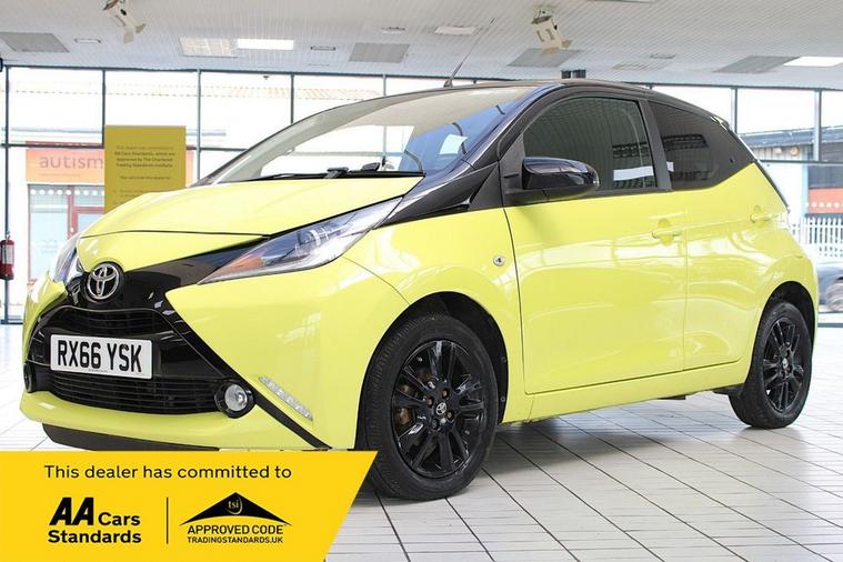 TOYOTA AYGO 1.0 VVT-I X-CITE 3 YELLOW BI-TONE FINISHED IN YELLOW FIZZ AND COMPLIMENTED WITH TWO TONE CHARCOAL INTERIOR, THIS VEHICLE HAS BEEN VERY WELL CARED FOR AND MAINTAINED WITH DOCUMENTED SERVICES AT 8184, 14658, 20104 MILES PLUS COMPREHENSIVE PRE DELIVERY HEALTH AND SERVICE CHECK COMPLETED PRIOR TO SALE 35510 MILES. KEY FEATURES INCLUDE ALLOY WHEELS, AIR CONDITIONING, PRIVACY GLASS, FRONT FOG LIGHTS, CRUISE CONTROL WITH SPEED LIMITER, BLUETOOTH, MULTI FUNCTIONAL STEERING WHEEL, ELECTRIC HEATED DOOR MIRRORS, DAB RADIO, ELECTRIC WINDOWS, REAR VIEW CAMERA, REMOTE CENTRAL LOCKING, X-TOUCH 7 INCH TOUCH SCREEN PLUS MORE. COMMITTED TO AA CARS STANDARDS: 3 MONTHS OR 3000 MILES WARRANTY INCLUDED WITH AN OPTION TO UPGRADE: 12 MONTHS AA BREAKDOWN RECOVERY INCLUDED: £75.00 CONTRIBUTION TOWARDS YOUR NEXT SERVICE/MOT AT ANY AA CARS STANDARD APPROVED WORKSHOP: WE STAND BY THE QUALITY OF OUR VEHICLES. WITH THE PURCHASE OF THIS VEHICLE, YOU WILL RECEIVE 3 MONTHS OR 3000 WARRANTY, 12 MONTHS AA BREAKDOWN RECOVERY, GIVING YOU ADDITIONAL PEACE OF MIND AND PROTECTION. ALL OUR CARS COME WITH AT LEAST 6 MONTHS MOT AND PRE SALE HEALTH CHECK AND ROAD TEST. OUR PROFESSIONAL TEAM ENSURES YOUR VEHICLE STAYS IN TOP CONDITION, AND YOU ENJOY A HASSLE-FREE OWNERSHIP EXPERIENCE. 4.6 STARS ON GOOGLE WITH OVER 550 REVIEWS: JOIN OUR COMMUNITY OF SATISFIED CUSTOMERS! OUR DEALERSHIP IS PROUD TO HAVE A 4.6 STAR RATING ON GOOGLE, BACKED BY OVER 550 POSITIVE REVIEWS. WE ARE COMMITTED TO PROVIDING EXCELLENT SERVICE AND HIGH-QUALITY VEHICLES. This Vehicle Comes Equipped with High Specification, Which Includes: -