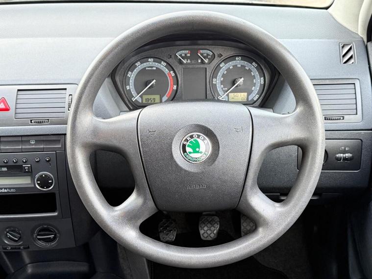 Here we have a nice little Fabia with a chain-driven 1.2 petrol engine. MOT until 07.04.2026 (no advisories: new exhaust, windscreen chip repaired, headlights reconditioned). It has great service history. The head unit has been repaired, and the engine runs like new. We have put a full service on it. The air conditioning was retested and regased, it blows ice cold air. Everything on this Fabia works.