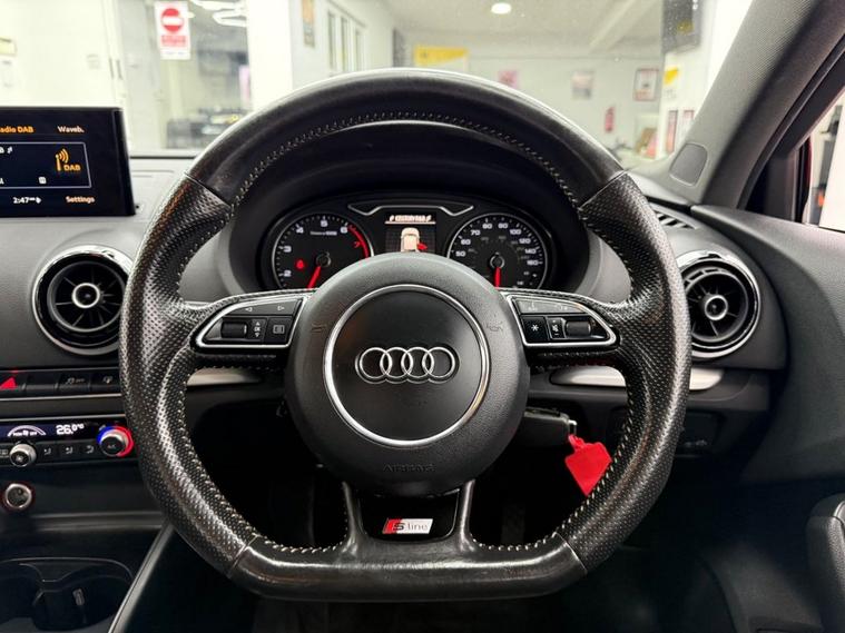 This 2015 Audi A3 is offered with 6 months warranty for your peace of mind. As a TFSI S line model with the sporty S line trim, it combines style and efficiency. The 1.4L petrol engine delivers a smooth and responsive driving experience. Equipped with desirable features, this A3 ensures a comfortable and connected journey. Dual-zone electronic climate control maintains the perfect cabin temperature for both driver and passenger, while the Bi-Xenon Plus headlights provide enhanced visibility on the road. Bluetooth audio streaming and mobile telephone preparation via Bluetooth interface keep you entertained and connected on the go. This A3 stands out with its impressive fuel economy of 58 mpg, meaning fewer trips to the petrol station and more money in your pocket. It also boasts low CO2 emissions, making it a more environmentally conscious choice. This combination of economy and environmental awareness makes it a smart choice in its class.