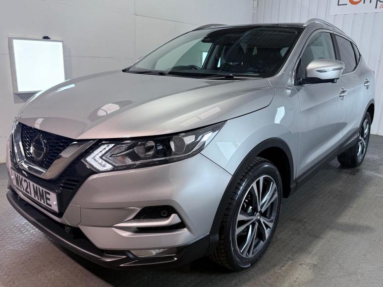 MOT MAY 2026, Glass Panoramic Roof, 18 Inch Alloy Wheels, Android auto , 360 camera , Built in sat nav **THIS CAR MAY BE AT OUR 150 CAR STORAGE FACILITY. PLEASE CALL AHEAD BEFORE YOU VISIT TO ARRANGE VIEWING AT OUR WINCHESTER SALES SITE** 2021 Nissan Qashqai 1.3 Dig-T N-Connecta in Blade silver metallic with grey interior , service history having been serviced at Nissan at 9k, 18k, 26k and specialist at 42000 miles with an MOT Running until May 2026. Great specification including Glass panoramic roof with electric blind, colour sat nav, bluetooth, DAB radio, 360 cameras with reverse camera and front /rear parking sensors, speed limiter, leather multi function steering wheel, auto lights and wipers, lane departure, 5 double spoke machine polished alloys , privacy glass plus lots more