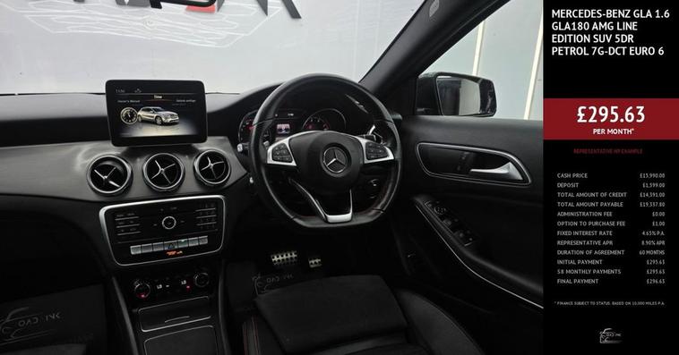 This Mercedes-Benz GLA180 AMG Line Edition blends dynamic design with everyday practicality. Finished in AMG bodystyling and sitting on 19 AMG multi-spoke alloys, it features LED high-performance headlights, privacy glass, chrome exhaust tips, and roof rails for a sporty yet refined look. Inside, enjoy heated front sports seats, dual-zone THERMOTRONIC climate control, ambient lighting, and a sleek 8 media display with Garmin navigation and smartphone integration. The reversing camera, cruise control, electric tailgate, and KEYLESS-GO starting function add to the premium convenience. Backed by features like Dynamic Select drive modes, auto LED lights, and a suite of safety systems, this GLA offers both comfort and confidence on the road.