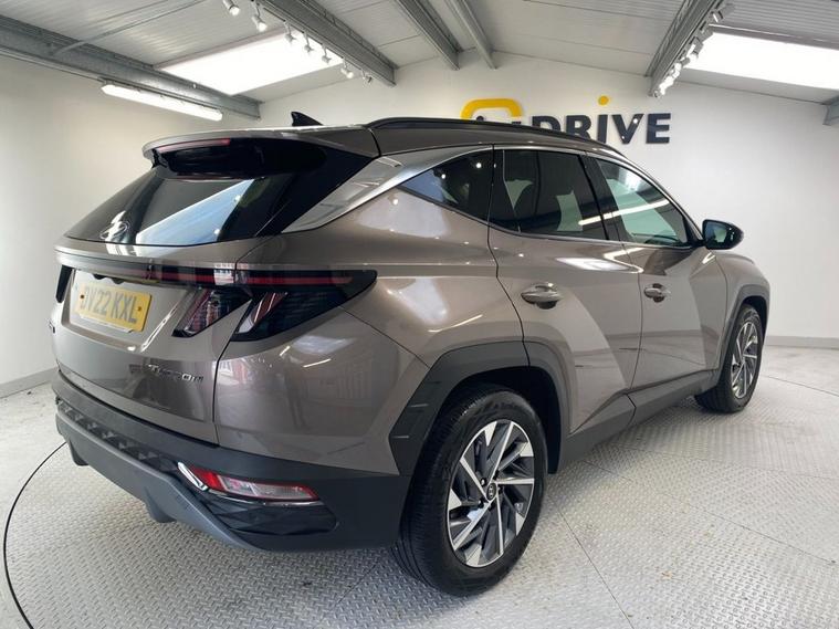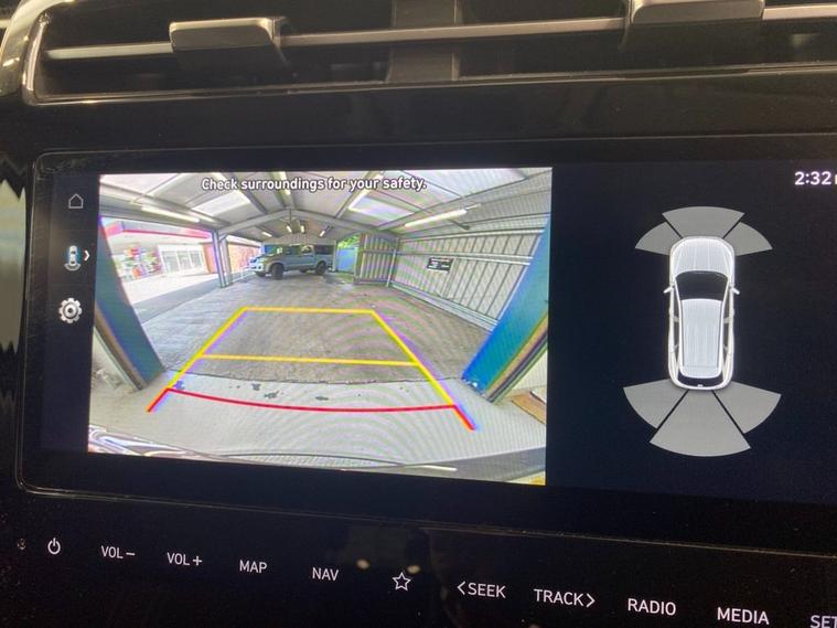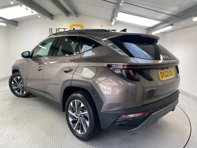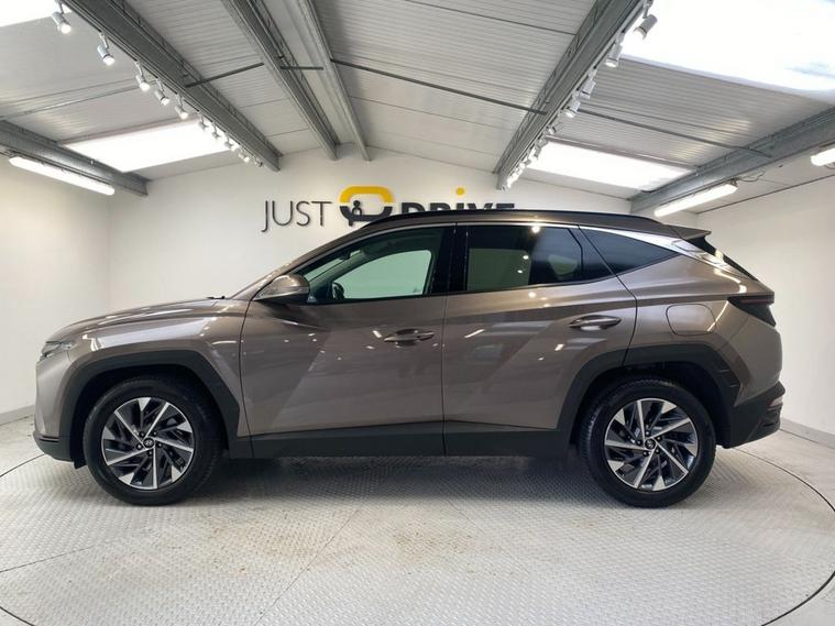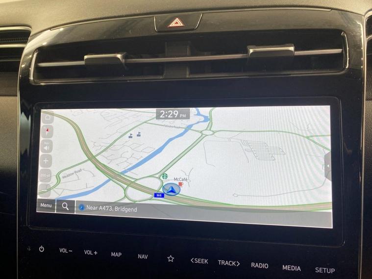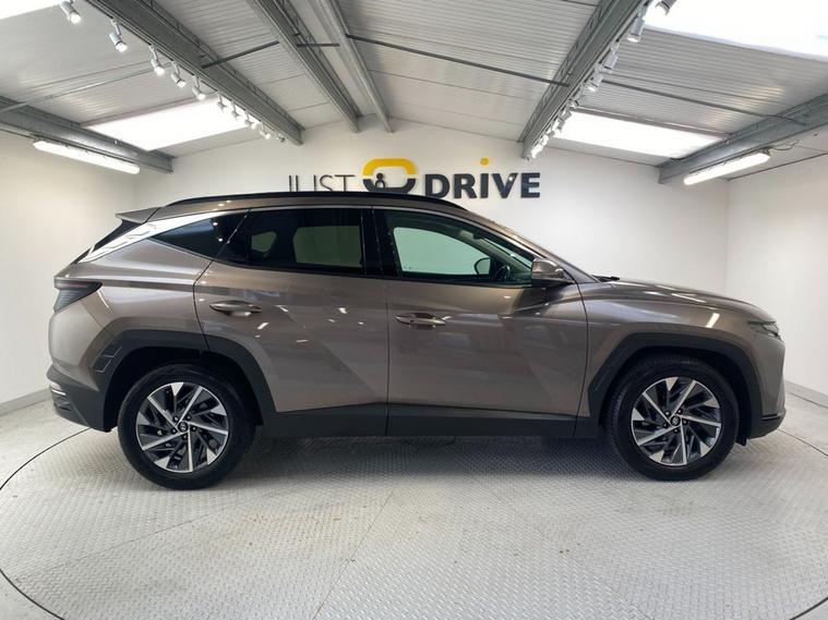 The Hyundai Tucson is a polished, premium and highly equipped SUV. It offers a huge amount of space and comfort for five adults and an enormous boot area to cope with the most demanding loads. Finished in Silky Bronze metallic it stands on diamond cut 18 alloy wheels and the exterior also features privacy glass and a rear spoiler. The interior is of very high quality and has sumptuous seating, the front being electrically heated with 3 temperature settings. Even the leather multi-function steering wheel is heated if required and gives easy access to telephone, audio and cruise control. Some other great features include a widescreen media system with navigation, Bluetooth connectivity with voice control and front / rear parking sensors plus a reversing camera.