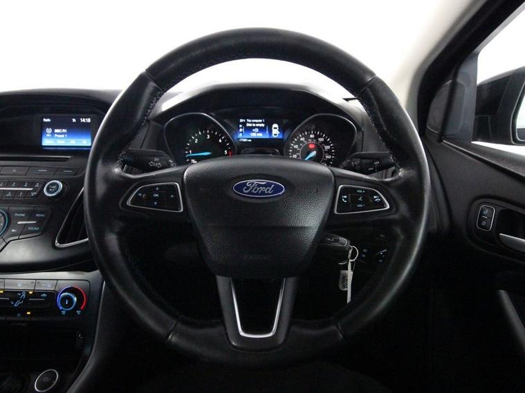 Full service history with 9 services. Last serviced at 72, 239 miles in June 2025. Presenting this 2015 Ford Focus 1.5 TDCi Zetec Hatchback 5dr Diesel Manual Euro 6 (s/s) (120 ps), a practical and efficient family hatchback offering a balance of strong diesel performance, comfort, and connectivity. Finished with 16-inch 5x2-spoke alloy wheels, body-coloured bumpers, door handles, mirrors with integrated indicators, chrome upper door line trim, rear spoiler, and black headlight bezels, it delivers a smart and modern appearance. Inside, the Zetec trim offers a driver-focused cabin featuring an 8-inch colour touchscreen with Ford DAB audio system, Bluetooth hands-free, voice control, USB/AUX connectivity, and a 4.2-inch TFT instrument display. Comfort and convenience are provided by manual air conditioning, height-adjustable drivers seat with lumbar support, front sports seats, leather-trimmed steering wheel with audio controls, rake and reach adjustable steering column, and front/rear 12V power sockets. Practical touches include 60/40 split-folding rear seats, heated windscreen and washer jets for winter driving, front fog lights, and Ford Easy-Fuel capless refuelling. Safety is well catered for with ABS, ESC, traction control (TC), torque vectoring control (TVC), hill start assist, emergency brake assist (EBA), intelligent protection system (IPS), tyre pressure monitoring system, collapsible steering column and pedals, ISOFIX child seat attachments, multiple airbags (front, side, curtain front and rear), and Fords MyKey system. A Thatcham Category 1 alarm and remote central locking ensure security, while a chrome-finished front grille and interior door levers add a premium touch. Powered by the refined and economical 1.5 TDCi diesel engine producing 120 ps, paired with a smooth manual gearbox, this Focus Zetec delivers excellent fuel efficiency and enjoyable driving dynamics, making it an ideal choice for commuting, family use, or longer motorway journeys.