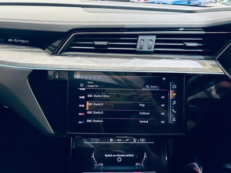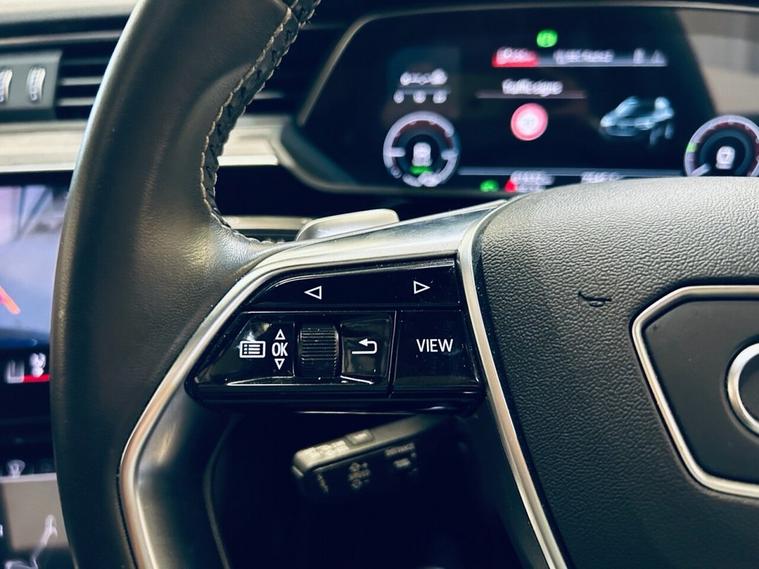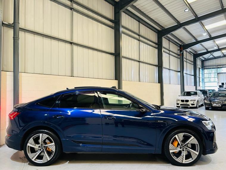 Audi e tron 55 Vorsprung Sportback 5dr Electric quattro 95kWh 408ps A premium fully electric SUV coupe combining cutting edge technology with Audis renowned build quality and quattro all wheel drive capability. Key features 95kWh battery with up to 408ps Quattro all wheel drive system 0 to 62mph in around 5.7 seconds WLTP range up to 241 miles Rapid charging capability up to 150kW Road tax exempt Service history Additional extras Vorsprung specification with panoramic glass sunroof Adaptive air suspension Matrix LED headlights Bang and Olufsen 3D premium sound system Heads up display Heated and ventilated Valcona leather sports seats 360 degree cameras and advanced park assist Audi Virtual Cockpit and dual touchscreen MMI navigation Lane assist and adaptive cruise control 21 inch alloy wheels The Vorsprung specification sits at the top of the e tron range with every luxury and safety feature included. With effortless electric performance, striking Sportback styling and outstanding levels of comfort and technology, this model represents the very best of Audis electric innovation.