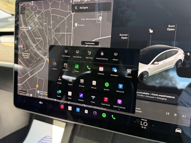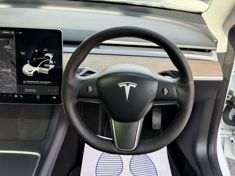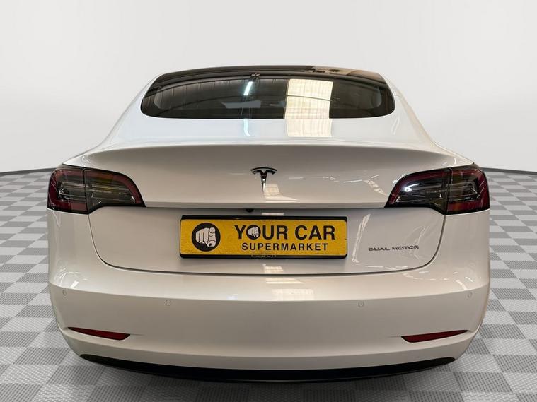 The Tesla Model?3 Long?Range Dual Motor is a sleek all?electric saloon combining sporty AWD performance with upscale comfort and cutting?edge technology. Its cabin includes heated, power?adjustable front seats, sat nav via the generous central touchscreen, auto dual?zone climate control, hands?free opening via the electronic tailgate, and a wireless charging padideal for modern lifestyles.