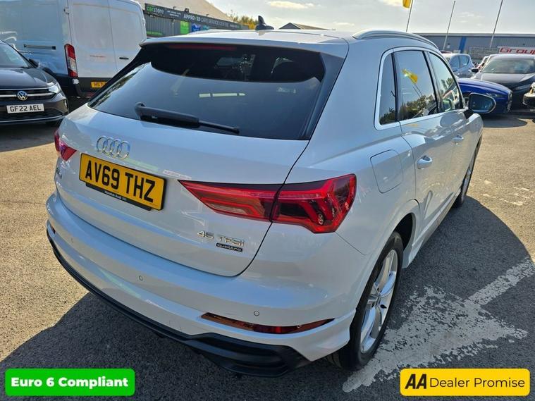 This 2019 Audi Q3 TFSI S line offers a compelling blend of performance and advanced technology. As a Euro 6 compliant model, this Four Wheel Drive vehicle is powered by a responsive 2.0 litre petrol engine, delivering an impressive 0 to 60 miles per hour in just 6.3 seconds. The S line trim enhances its appeal with a suite of desirable features, including LED headlights with LED daytime running lights and dynamic rear indicators for superior visibility. Navigating tight spaces is made easier with rear parking sensors and parking assistance, while the Audi Smartphone Interface, complete with wireless Apple CarPlay, keeps you connected on the go. Enjoy a comfortable cabin environment thanks to the dual zone electronic climate control, and benefit from the convenience of automatic headlights activated by the light and rain sensor. The performance of this Audi Q3 TFSI S line is a key highlight, with its brisk acceleration demonstrating its capability. The inclusion of Four Wheel Drive provides enhanced traction and stability, setting it apart from many other vehicles in its class. Furthermore, the advanced lighting system, including dynamic rear indicators, not only improves safety but also adds a sophisticated touch. The seamless integration of your smartphone via wireless Apple CarPlay further elevates the driving experience, offering convenient access to your favourite apps and music. This Q3 is designed to offer a refined and engaging drive, combining practicality with Audis renowned quality.