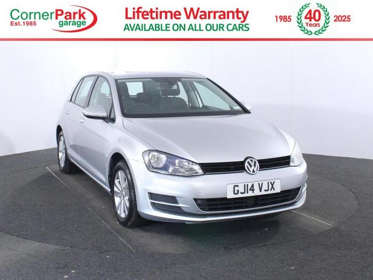 Full service history with 10 services. Last serviced at 60, 025 miles in February 2025. Presenting this 2014 Volkswagen Golf 1.4 TSI BlueMotion Tech SE Hatchback 5dr Petrol DSG Euro 5 (s/s) (122 ps), a refined and versatile hatchback that blends efficient turbocharged petrol performance with high-quality design, everyday practicality, and advanced safety features. Finished in Reflex Silver (£535 option) with 16-inch Toronto alloy wheels, chrome-trimmed grilles, and body-coloured bumpers, mirrors, and handles, it delivers a clean, contemporary look. Inside, the SE trim offers a comfortable, ergonomic cabin with front comfort seats featuring height and lumbar adjustment, a leather-trimmed three-spoke steering wheel and gear knob (£175 option), brushed stainless steel decor, and a range of thoughtful storage solutions including under-seat drawers, a cooled and illuminated lockable glovebox, and a variable-height boot floor. The Composition Media system provides DAB digital radio, CD/MP3 player, Bluetooth phone preparation, MDI with USB/iPod connection, plus eight speakers. Convenience features include rain-sensing wipers, automatic headlights, cruise control, electric windows front and rear, air conditioning, and illuminated vanity mirrors. Driver assistance and safety technology are excellent for its class, with Adaptive Cruise Control (ADC) and radar-based Front Assist with City Emergency Braking, Pre-Crash preventive occupant protection, XDS electronic differential lock, Automatic Post-Collision Braking, Driver Alert System, and electronic parking brake with auto hold. Multiple airbags including curtain, front side, drivers knee, and passenger units plus ISOFIX rear seat prep, whiplash-optimised head restraints, ESP, ASR, and tyre pressure monitoring further enhance protection. Practical touches include a rear centre armrest, 60/40 split-folding rear seats with load-through provision, roof console storage, and rear-seat cupholders. Powered by the 1.4 TSI 122 ps petrol engine paired with Volkswagens smooth 7-speed DSG automatic gearbox, this Golf delivers an ideal balance of responsive performance, refinement, and efficiency. Well-specified and timeless in design, its an excellent choice for those seeking a premium-feel hatchback thats equally at home in the city or on the motorway.