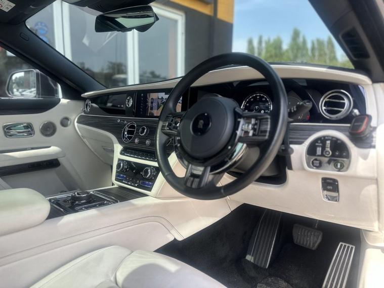 This Rolls-Royce Ghost is not just a car; its a lifestyle choice for those who demand the very best. Experience the pinnacle of automotive excellence and make this extraordinary vehicle yours today. Indulge in the prestige, power, and poise of the Rolls-Royce Ghost where every mile is a masterpiece. Rolls-Royce Monogram Embroidered Headrests. Vat Qualifying Vehicle. VAT Qualifying. Under Rolls-Royce Warranty 2026, Full Rolls-Royce Service History, Full PPF Exterior + Interior, Immaculate Condition, Grace White Leather Interior, Contrast Black Stitching, Rear Wheel Steer, P anoramic Sun Roof, Starlights, Rolls Royce Bespoke Audio, Illuminated Fascia, Picnic Tables, Illuminated Grill, Rear Theatre Configuration, 21 Polished Alloy Wheels, RR Monogram To All Headrests, Massage Seats , Heated Seats, Heated Steering Wheel, Effortless Doors, Immersive Rear Seating, Technical Bespoke Clock, Illuminated Ghost Tread plates Active Cruise Control, Driving Assistant, Heads Up Display, 360 Surround Cameras, Comfort Entry System, Privacy Glass, Commission Collection Umbrellas, Apple Car Play, Lambswool Floor Mats