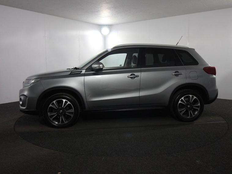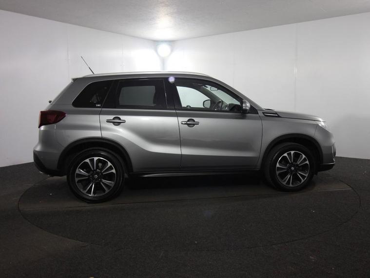 1 Owner. Full service history with 5 services. Last serviced at 65, 771 miles in February 2025. Presenting this 2020 Suzuki Vitara 1.4 Boosterjet MHEV SZ5 SUV 5dr Petrol Hybrid Manual ALLGRIP Euro 6 (s/s) (129 ps), a modern, well-equipped compact SUV combining efficient mild hybrid petrol power with Suzukis capable ALLGRIP four-wheel drive system. Finished with 17-inch polished alloy wheels, chrome exterior accents including grille trim and door handles, wheel arch extensions with side skirts, silver door trim and centre console ornaments, and green tinted rear windows, it offers a stylish and robust appearance. Inside, the SZ5 trim features a spacious and comfortable cabin with premium touches such as a 3-spoke leather-covered steering wheel, suede door trim inserts, chrome interior door handles, double sliding panoramic sunroof, and blue ambient lighting. The 4.2-inch colour LCD instrument cluster and smartphone linkage display audio system offer connectivity and control with Bluetooth, USB, DAB digital radio, navigation system, and steering wheel-mounted audio controls. Convenience features include automatic air conditioning, keyless entry and start, rain-sensing wipers, electric front and rear windows, electrically folding mirrors with integrated turn signals, dual-zone lighting, and ample storage with a removable double luggage room floor and centre armrests. Safety and driver assistance are comprehensive with adaptive cruise control, dual sensor brake support (AEB), lane departure warning with prevention, rear cross traffic alert, front and rear parking sensors, rear parking camera, multiple airbags including curtain and side airbags, tyre pressure monitoring system, hill hold and descent control, electronic stability program (ESP), vehicle sway warning, and ISOFIX child seat anchors. Additional practical features include hill descent control, traffic sign recognition, deadlocks, security alarm, and emergency flat tyre repair kit. Powered by an efficient 1.4-litre Boosterjet mild hybrid petrol engine producing 129 ps, paired with a smooth manual gearbox and Suzukis ALLGRIP four-wheel drive, this Vitara SZ5 offers a strong blend of performance, fuel economy, and confident all-weather capability. It is an excellent choice for those seeking a modern, stylish, and well-equipped SUV with the latest technology and safety systems.