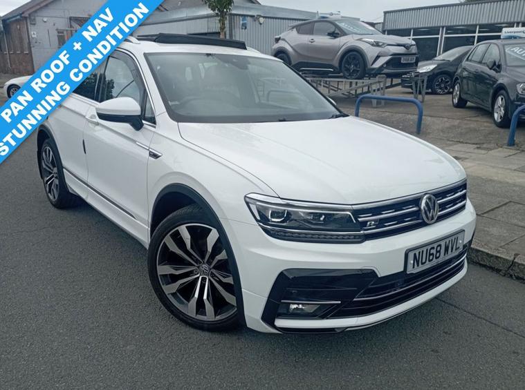 VOLKSWAGEN TIGUAN R-LINE TDI 4MOTION AUTOMATIC Experience the perfect blend of sporty style, premium comfort, and all-weather capability with this stunning Volkswagen Tiguan R-Line. The iconic R-Line styling gives it a dynamic presence on the road, while the robust TDI engine paired with the smooth 4MOTION automatic transmission ensures a confident and enjoyable drive, no matter the conditions. This Tiguan boasts an excellent service history, with a majority of services carried out at a VW dealership, documented at the following mileages: 14, 561 23, 972 32, 719 33, 347 40, 117 45, 000 61, 578 85, 183 It will also receive a fresh service upon sale, providing you with complete peace of mind. INCLUDED WITH THIS CAR: 12-Month MOT 6-Month Comprehensive Parts and Labour Warranty 6-Month Breakdown Assistance KEY FEATURES & SPECIFICATION: R-Line Styling: Stand out from the crowd with the aggressive R-Line body kit, including unique front and rear bumpers, wheel arch extensions, and distinctive badging. Electric Panoramic Sunroof: A large, electric panoramic sunroof floods the cabin with natural light, creating an open and airy feel for all passengers. 4MOTION All-Wheel Drive: Volkswagens intelligent all-wheel-drive system provides exceptional traction and stability in all driving conditions. Automatic DSG Gearbox: A smooth and responsive 7-speed DSG automatic transmission makes for a truly effortless driving experience. Discover Media Navigation System: Stay on track and entertained with the integrated navigation system, featuring streaming and internet capabilities. Digital Cockpit Pro: The high-resolution digital dash display is fully customisable, presenting all your essential driving information with clarity. Heated Front Seats: Stay warm and comfortable on colder days with the sports comfort seats, offering exceptional support for both driver and passenger. Front and Rear Parking Sensors: Effortlessly manoeuvre into tight spaces with the assistance of front and rear parking sensors. Keyless Entry: Enjoy the convenience of keyless locking and starting, making it quick and easy to get on your way. FACTORY OPTIONAL EQUIPMENT: LED Mid headlights eCall and Security & Service Plus Progressive steering Sports suspension Race cloth with San Remo microfibre - Dark Magnetic Grey Pure White paint Total Price of Optional Equipment: £2, 075 Would you like to request a test drive in this car or a personalised video? Contact us today on 01512972917 to find out more.
