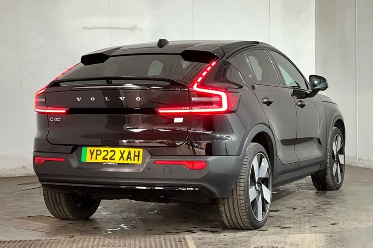 This 2022 Volvo C40 Ultimate is a pristine example, having had only one owner from new and boasting a clear vehicle history check. As a fully electric vehicle, it offers a smooth and responsive driving experience, complemented by its Four Wheel Drive drivetrain. The Ultimate trim level ensures you benefit from a host of advanced features, including Keyless Drive for effortless entry and start, and a comprehensive Driver Assistance package featuring Pilot Assist and Adaptive Cruise Control. Youll also appreciate the Active Bending Pixel LED Headlights with Adaptive Shadow Technology for enhanced visibility, Wireless Inductive Mobile Phone Charging for convenience, and the Climate Pack which includes heated seats and a heated steering wheel for year round comfort. The MOT is valid until May 2026, providing peace of mind. Experience impressive performance with the Volvo C40 Ultimate, capable of accelerating from 0 to 60mph in a swift 4.5 seconds, a highlight that sets it apart from many other electric vehicles. This model also boasts a substantial battery total capacity of 78 kWh, providing a maximum range of 277 miles when new, another key indicator of its capability. For your convenience, a full charge at home using a 7kW charger takes approximately 12 hours, while rapid public charging can replenish the battery from empty to 80% in as little as 40 minutes. Furthermore, youll find ample storage space with its large boot, making it a practical choice for everyday use and longer journeys.