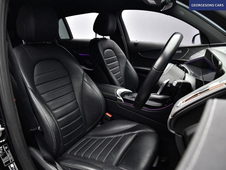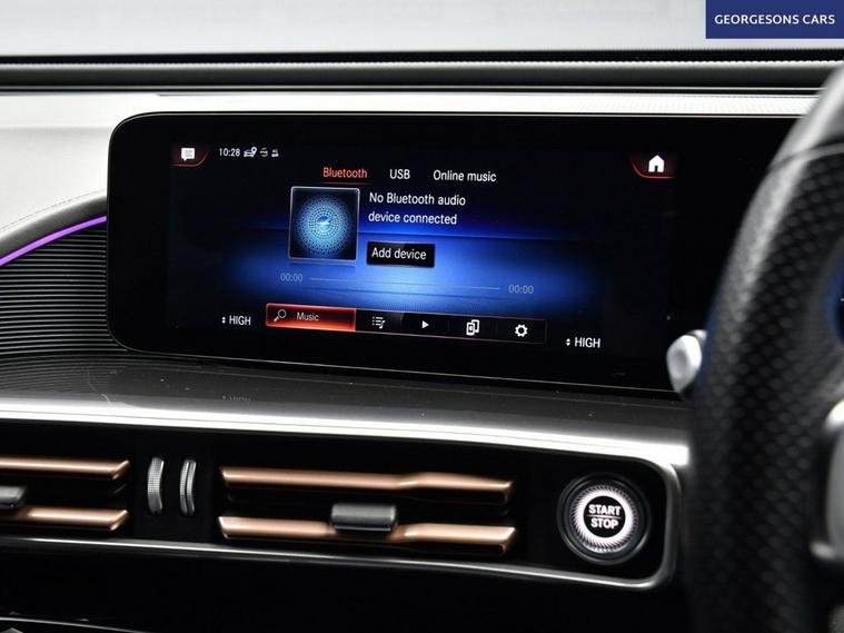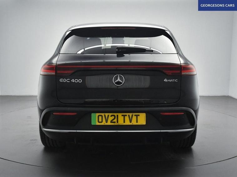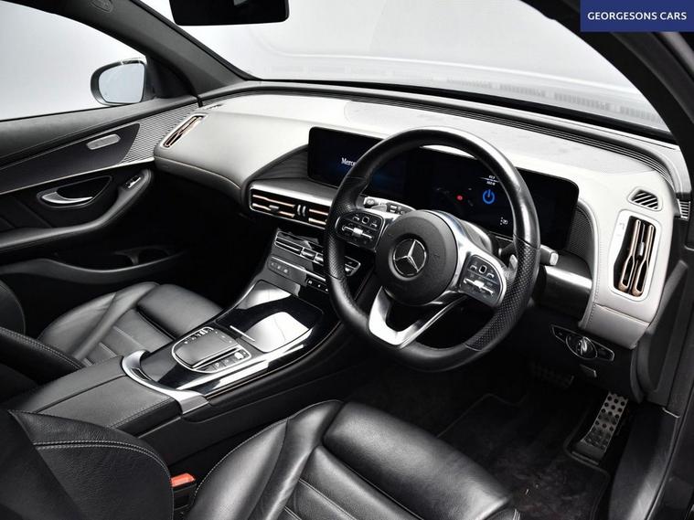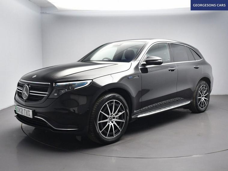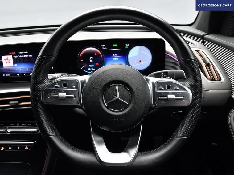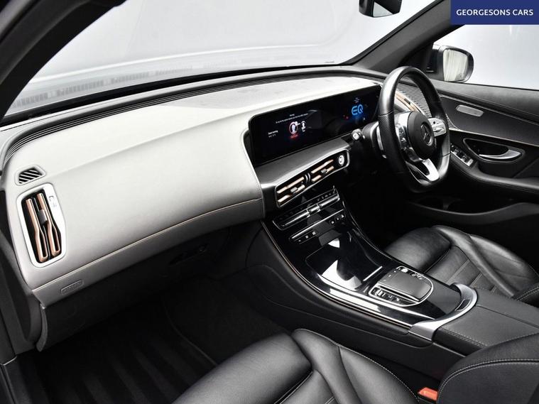 The Mercedes-Benz EQC 400 AMG Line combines dual electric motors with 408hp, delivering 0-62mph in 5.1s and up to 255 miles WLTP range in this all-wheel-drive 4MATIC setup with instant single-speed transmission. The AMG Line trim brings bold styling with 20-inch alloys and premium interior. With one owner and five services (four dealer), this EQC is in superb condition. Enjoy the electric tailgate and ambient lighting for refined atmosphere. Stay connected with Apple CarPlay, Bluetooth, DAB radio and satellite navigation. Parking is effortless with reverse camera and parking sensors. Stay warm with heated front seats and dual-zone climate control. Paddle-shift regen, cruise control with speed limiter, lane assist, blind spot assist and selectable drive modes deliver relaxed, safe EV motoring every day. The spacious five-door SUV includes a 500-litre boot.