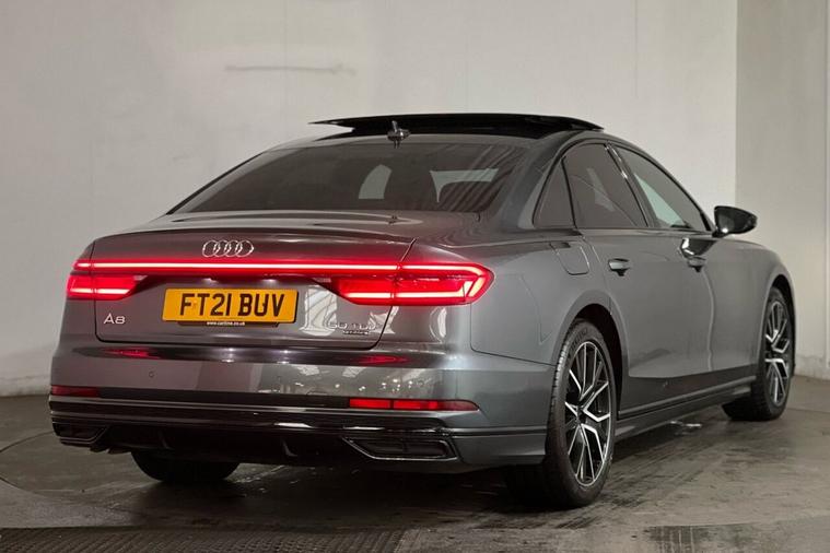 This 2021 Audi A8 TDI V6 Black Edition offers a superb blend of performance and luxury, boasting a powerful 3.0 litre diesel engine and Audis renowned four wheel drive system for confident handling in all conditions. As a Euro 6 compliant vehicle, it meets stringent emission standards. Inside, youll find the exceptional comfort of Comfort Contour Seats, complete with electric adjustment and memory functions for both driver and front passenger, ensuring a personalised driving experience. The Audi HD Matrix LED headlights provide superior illumination, while the convenience of a rear view camera aids parking. Stay connected and powered up with the Audi Phone Box, offering Bluetooth connectivity and wireless phone charging. The A8 TDI V6 Black Edition delivers an impressive 0-60mph acceleration time of just 5.9 seconds, showcasing its dynamic capabilities. This performance, combined with its substantial boot space, makes it a practical yet exhilarating choice. The inclusion of features like the memory seats and advanced lighting systems clearly sets this Audi A8 apart from other vehicles in its class, offering a more refined and convenient ownership experience.