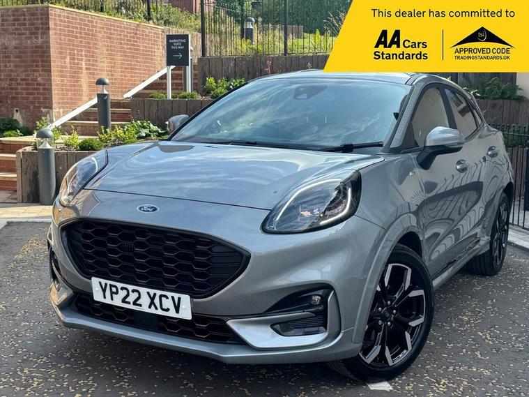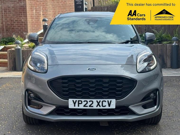 ** FREE 12 MONTH AA COVER ** A LOVELY CLEAN EXAMPLE AND FORD MAIN DEALER SERVICED RIGHT UPTO 2025. THIS PUMA IS AN ST LINE X EXO BOOST HYBRID. WE LONG MOT, 6 MONTH NATIONWIDE WARRANTY AND A SET OF 2 KEYS WITH ALL HANDBOOKS. A BEAUTIFUL EXAMPLE. WE ARE DELIGHTED TO OFFER THIS TO SALE. WE SHALL SUPPLY A 6 MONTH NATIONWIDE WARRANTY, THIS PUMA HAD A NEW CLUTCH AT 89761 MILES WITH FLYWHEEL. FEATURES INCLUDE, NAVIGATION, BLUETOOTH, SYNQ TECHNOLOGY, PARK SENSORS, 1/2 LEATHER SEATS, CRUISE, MULTIFUNCTION STEERING WHEEL, VOICE ACTIVATED CONTROLS, UNMARKED 18 INCH ALLOYS, FOLDING MIRRORS. GREAT TYRES ALLROUND AND ITS READY TO DRIVE AWAY. ** WE ARE OPEN 6 DAYS A WEEK WITH VIEIWNGS BY APPOINTMENT ** CALL 01625320973 WE ARE HERE TO HELP YOU ** MON - SAT 8AM -6PM ** WE HAVE NATIONWIDE DELIVERY OPTIONS - SIMPLY CALL 01625320973 FOR MORE INFORMATION.