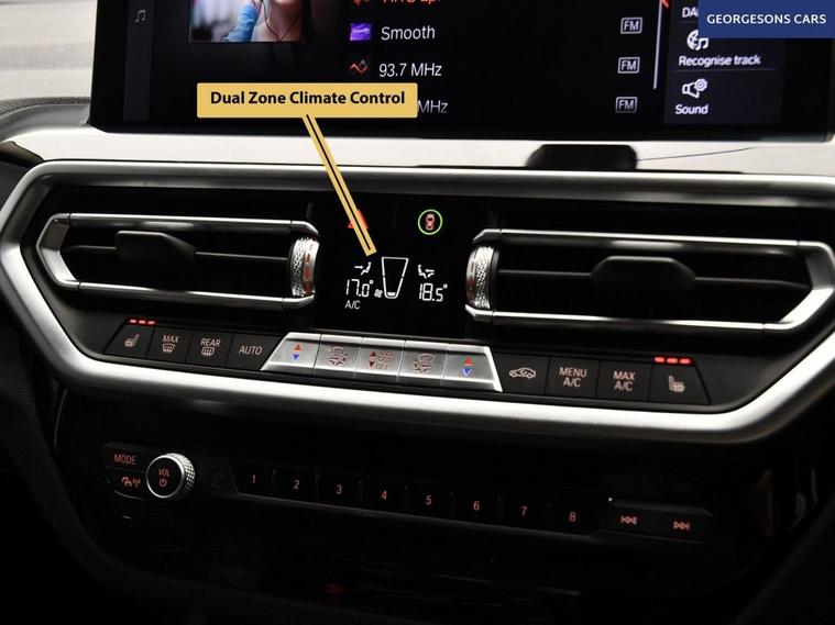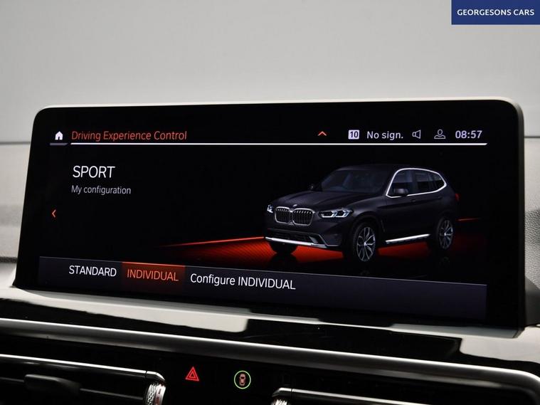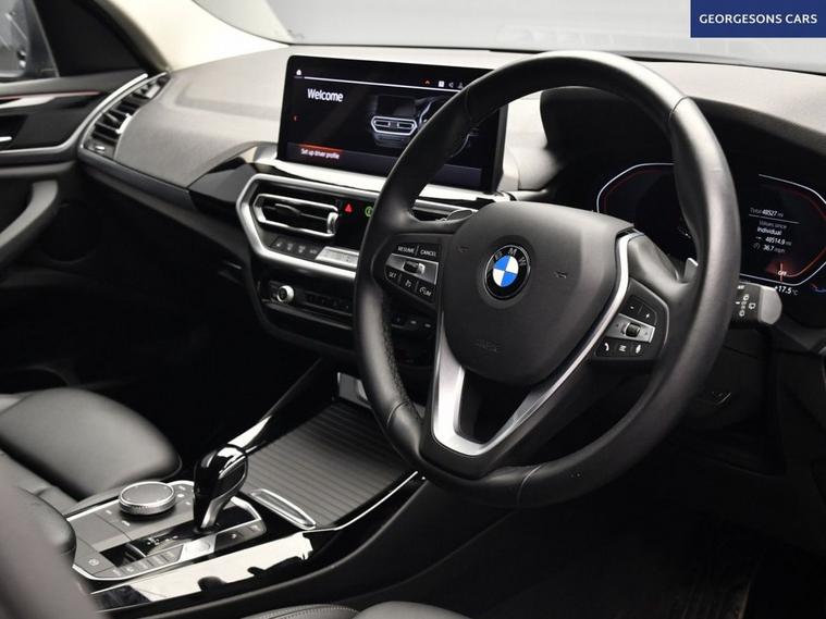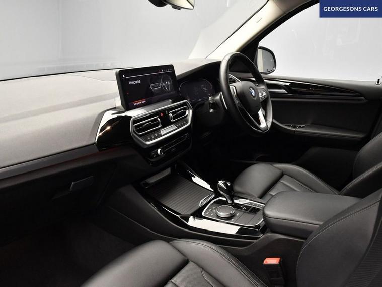 Powered by a 2.0-litre diesel engine with 48V mild-hybrid technology, this BMW X3 20d MHT xLine SUV achieves 0-62mph in 7.9 seconds and up to 50.2mpg with an 8-speed automatic and xDrive all-wheel drive. The xLine trim blends rugged styling with advanced technology for a refined drive. With one owner this X3 is in pristine condition, ready for any journey. Navigate effortlessly with satellite navigation, a reverse camera, front and rear parking sensors, and park assist, while Apple CarPlay, Bluetooth, and DAB radio provide seamless connectivity through a 14.9-inch BMW Curved Display. Rear climate control, heated front seats, and ambient lighting with 15 color options create a luxurious cabin. Cruise control with a speed limiter, hill assist, lane assist, and selectable drive modes ensure confident and safe driving, while a push-button start adds convenience. The 550-litre boot and sleek five-door SUV design complete this high-spec diesel hybrid. Contact us today to experience this dynamic SUV!