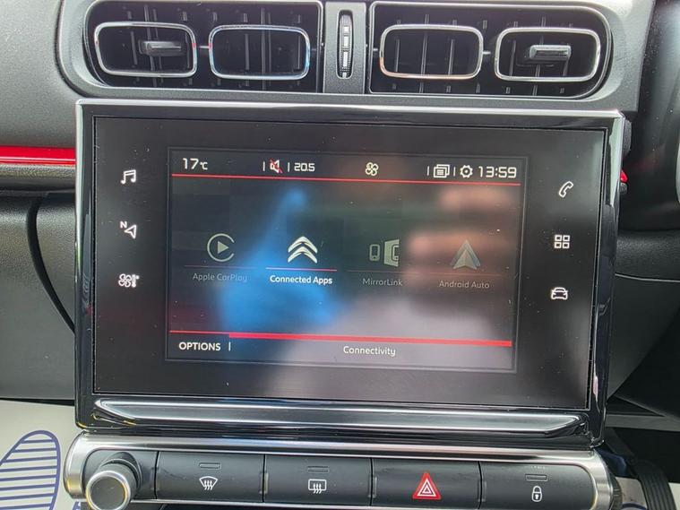 NO Recall on C3 MOT Vallid till 10-04-2026 A full health report will be provided at the time of sale. Comes with a 3-month parts and labour warranty. Supplied with two keys. Service history available. Finance options available from zero deposit apply easily through our website. Includes 12 months of complimentary AA Breakdown Cover with every car. Extended AA warranties available at an additional cost. A small deposit secures your car for up to one week. 12 Volt Socket in Cabin 17in Alloy Wheels - Diamond Cut Cross 7 inch Touchscreen ABS with Electronic Brakeforce Distribution and Emergency Braking Assistance Active City Brake Airbump - Black Alarm Auto-Dimming Electrochrome Rear View Mirror Automatic Air Conditioning Automatic Lights and Windscreen Wipers Bluetooth Handsfree and Media Streaming with USB Socket and Jack Body Colour Painted Door Handles Boot Light Citroen Connect DAB Radio with 6 Speakers Citroen Connect Digital Nav Coffee Break Alert Collision Risk Alert ConnectedCAM Citroen Cruise Control with Speed Limiter Cupholders Dark Tinted Rear Windows Driver - Front Passenger - Front Lateral and Curtain Airbags Driver Attention Alert Drivers - Passengers and Rear Seats Unfastened Seat Belt Warning Drivers and Passengers Sunvisor with Courtesy Mirror Electric Child Locks Electrically Adjustable Door Mirrors Electronic Stability Control - ESC Exterior Temperature Display Five Three-Point Inertia Reel Seat Belts Flair Edition Carpet Mats Front Courtesy Reading Lights Front Electric Windows - One Touch with Anti-Pinch Front Fog Lights Front Seat Back Pockets Front Seat Belt Pretensioners GEI - Gear Efficiency Indicator Height Adjustable Drivers Seat Height Adjustable Halogen Headlights Height and Reach Adjustable Steering Wheel Hill Start Assist Immobiliser LED Daytime Running Lights Lane Departure Warning System Lashing Eyes in the Boot Leather Gear Knob Leather Steering Wheel with Satin Chrome and Bright Black Inserts Locking Wheel Nuts Luggage Style Interior Door Handles Mirror Screen with MirrorLink and Apple CarPlay Multi-Function On-Board Trip Computer Passenger Seat ISOFIX Mountings and Rear ISOFIX Mounting Points Rear Electric Windows - One Touch with Anti-Pinch Rear Parking Sensors Rear Split - Folding Seats Remote Central Locking with Deadlocks Rev Counter Reversing Camera Roof - Sport Red Space Saver Spare Wheel Speed Limit Recognition and Speed Warning Steering Wheel Mounted Controls Tyre Pressure Monitor Variable-Assistance Power Steering Wheel Arch Extensions Browse more vehicles at: dealer's website .