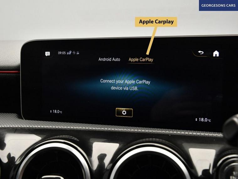The Mercedes-Benz A-Class 1.3 A180 AMG Line (Executive) combines a responsive 1.3-litre turbo petrol engine with 136hp, delivering 0-62mph in 9.2 seconds and up to 52.3mpg in this front-wheel-drive setup with a smooth 7-speed DCT automatic transmission. The AMG Line (Executive) trim enhances the sporty appeal with 17-inch alloy wheels, premium features, and a dynamic chassis for refined performance. Navigate effortlessly with integrated satellite navigation, Apple CarPlay, Bluetooth, and DAB radio, ensuring seamless connectivity on every journey. Parking is a breeze thanks to the reverse camera and parking sensors, providing clear visibility and confidence in tight spaces. Stay comfortable with dual-zone climate control and heated seats, offering personalized warmth year-round. Cruise control with speed limiter and lane assist enhance safety and relaxation on highways. Blind spot assist adds extra security, while selectable drive modes provide tailored performance, whether for efficiency or dynamic driving. Start-stop technology improves fuel economy in traffic. The spacious five-door hatchback design includes a 370-litre boot for practicality.