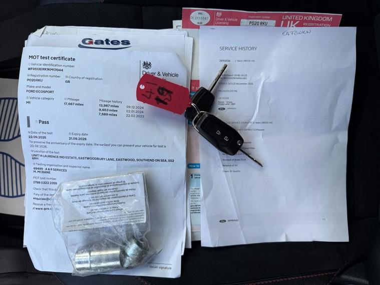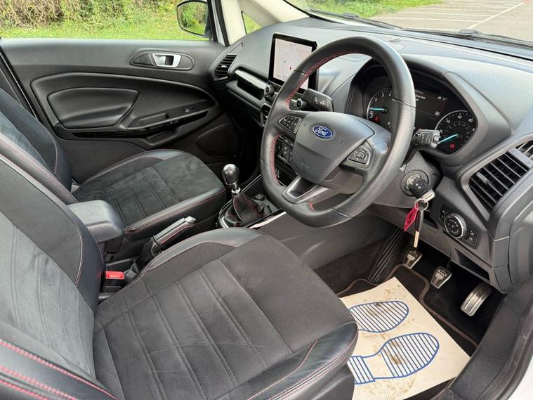Here for sale at Leigh Cars Ltd we are delighted to present this lovely low mileage example of the extremely popular ULEZ EXEMPT Ford Ecosport GPF 1.0 ST Line 5dr 125bhp petrol manual SUV finished in frozen white paint with contrasting black roof, mirror caps and A pillars. This wonderful example comes with a great service history - 4 services - last completed September 2025. The car also comes with a brand new MOT for your peace of - expiry September 2026. This particular example benefits from some great standard features including half leather alcantara interior, Ford SYNC 3 satellite navigation, Apple Car Play / Android Auto, rear parking sensors + rear camera, DAB radio, climate control with ice cold air conditioning, bluetooth for phone and music, cruise control + speed limiter, electric windows + mirrors, automatic lights + wipers, Ford quickclear windscreen, power fold mirrors, 17 alloy wheels, remote central locking, 2 keys + much much more. This would make an ideal family car with an abundance of space and practicality with a great sized boot! Road tax is only £195 per year and economy figures of 47.1mpg combined on average make this one a no brainer! This beautiful rare example also benefits from being ULEZ charge exempt. Book in your test drive today to avoid disappointment... As we are an AA accredited dealer you will receive 12 months complimentary AA roadside assistance. AA warranty packages available up to 2 years and superb low rate zero deposit finance deals available today. Why not give us a call or visit our website finance calculator to see how affordable your new car could be. We are rated 5 stars by our customer reviews on Autotrader, Trustpilot, Facebook, Google, Car Gurus and Trustpilot so you can be assured you are dealing with a company that truly cares about the customer. We take great pride in providing a personal quality service like no other and guarantee to make your purchase a smooth and pleasant experience. Please read our customer reviews online to see what they have to say about the level of service they received from us when purchasing a car. We have recently been awarded with the accolade of Car Gurus Top Rated Dealer 2023 - thats 6 years running now & Autotrader Highly Rated Dealer 2020, 2022 and 2023 - Buy Your Car From The Best In Essex. Viewing strictly by appointment only - please call to avoid disappointment.