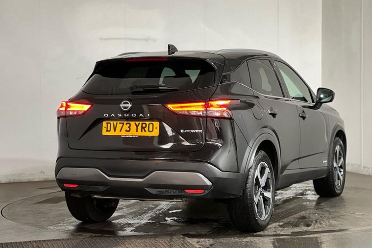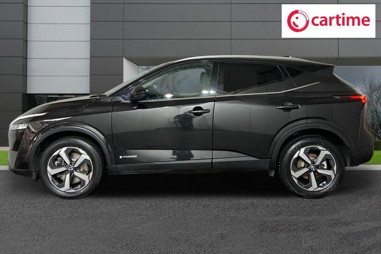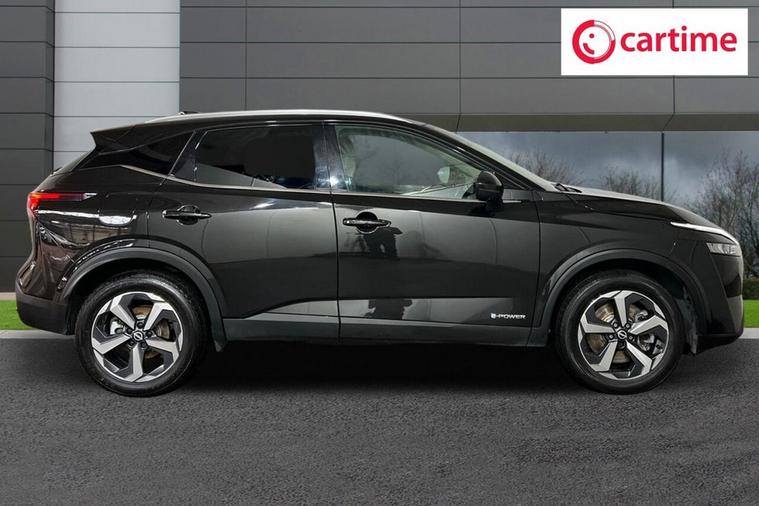 This 2023 Nissan Qashqai h e-POWER N-Connecta is a superb example, having had only one owner from new and boasting a clear vehicle history check. As a Euro 6 compliant model, it features a responsive 1.5 litre petrol hybrid engine, offering an impressive 54 miles per gallon. Inside, youll find the N-Connecta trim packed with useful technology, including front parking sensors with parking assistance, intelligent cruise control for effortless journeys, and seamless connectivity with wireless Apple CarPlay and wired Android Auto. The intelligent auto headlights ensure optimal visibility, automatically adjusting to changing light conditions. This Qashqai truly excels with its highlights, demonstrating its superiority over other vehicles in its class. Experience brisk acceleration, reaching 0 to 60 miles per hour in just 7.9 seconds, while enjoying the benefits of low CO2 emissions. Furthermore, the generous boot space provides ample room for all your luggage and shopping needs, making it a practical choice for families and everyday life.