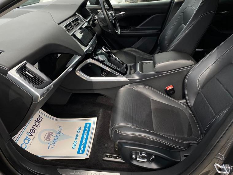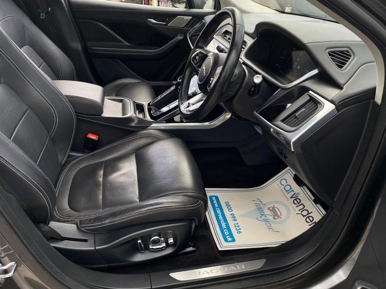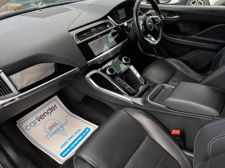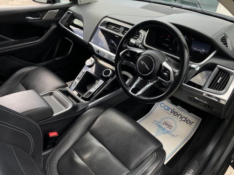 At Carvender experience the perfect blend of cutting-edge fully electric performance and timeless British luxury with this stunning 2019 Jaguar I-Pace 400 90kWh 4WD 5dr. This I-Pace with 4WD is a fully electric SUV which exhibit luxury and modern features on the road. This I-Pace is powered by a 90kWh battery and dual electric motors producing an impressive 400 brake horse power while giving you 278 miles charging range in single charge (by books). This I-Pace with its striking design, uncompromising comfort and instant electric performance make it a truly premium driving experience on the road. This Jaguar I-Pace is equipped with Luxury and Comfort features including Rear & Front Parking Sensors, 360 View Parking Camera, Heated Seats, Leather Upholstery, Adaptive Cruise Control, Lane Keeping Assist, Blind Spot Alert, , SatNav, Mobile Connection, Apple CarPlay/Android Auto, Selectable Different Driving Modes and much more. This I-Pace looked after very well as we have 4 services in the file which have been carried out at the mileages of 23, 8358, 14835 and 25890 on 10/09/2025. Dont miss the opportunity to own this exceptional SUV. Contact us today to arrange test drive or visit our website for home delivery with 14 days money back guarantee.