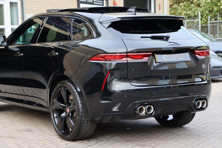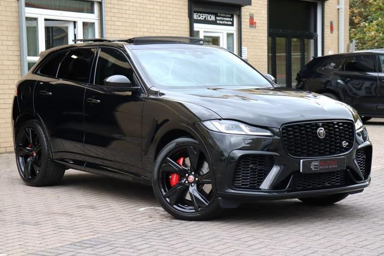 We are proud to share this 2022 (72 Reg) Jaguar F Pace SVR 5.0 P550, which is finished in Santorini Black. Our example has had 2 owners from new, only covered 20, 000 miles and boasts over £7, 000 in some fantastic optional extras. Some of the highlighted spec on this car includes: Sliding Panoramic Roof, Head Up Display, Deployable Side Steps, 22 Forged Alloys, Carbon Fibre Interior Trim, Black Exterior Pack, Meridian Surround Sound, Heated Steering Wheel and Wireless Charging. As part of this cars preparation before sale we have fitted brand new rear brake pads and also performed an oil and pollen service. This car also has a Ghost Immobiliser fitted to it. **Cash Price £57, 995.00, £5, 959.00 Deposit, 48 Monthly Payments of £849.99, Guaranteed Future Minimum Value of £26, 742.72, Based on 8, 000 Miles Per Annum at 9.9% APR** (a) **FOR AUTOTRADER APP USERS, PLEASE SEE THE BELOW TAB THIS CAR COMES WITH TO SEE THE OTHER SPECS ON THIS CAR OR VISIT OUR WEBSITE FOR MORE INFO**