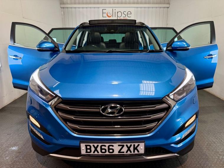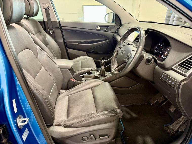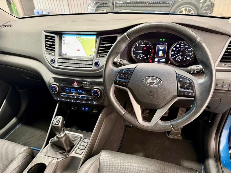 **THIS VEHICLE MAY BE AT OUR 150-CAR STORAGE FACILITY. PLEASE CALL AHEAD TO ARRANGE VIEWING AT OUR WINCHESTER SALES SITE** MOT June 2026 Serviced at 22k, 28k, 32k, 36k, 42k, 47k, 51k, 61k miles. A 2 litre Hyundai Tucson finished in Ara blue with 19 inch alloy wheels. Fitted with heated and cooled front seats, heated steering wheel, reversing camera, built-in sat-nav, automatic De-Fog for front windscreen, dual zone climate control, cruise control with speed limiter, heated rear seats, lane assist and Parking sensors front and rear. Powered by a 2 litre Diesel engine and a manual gearbox.