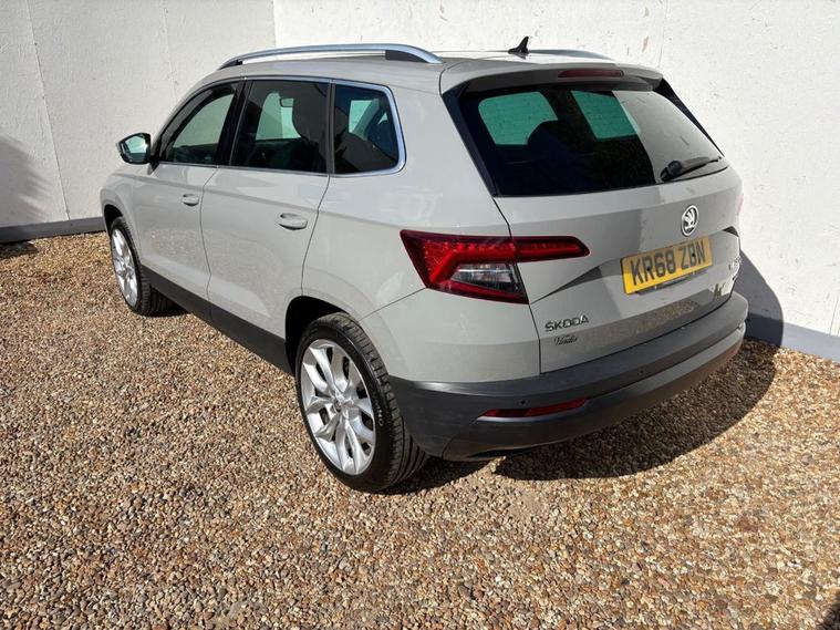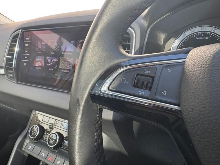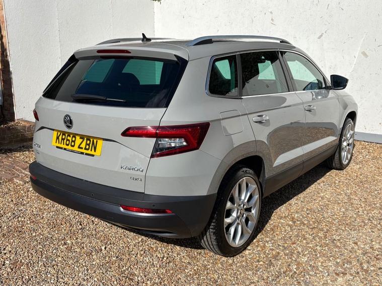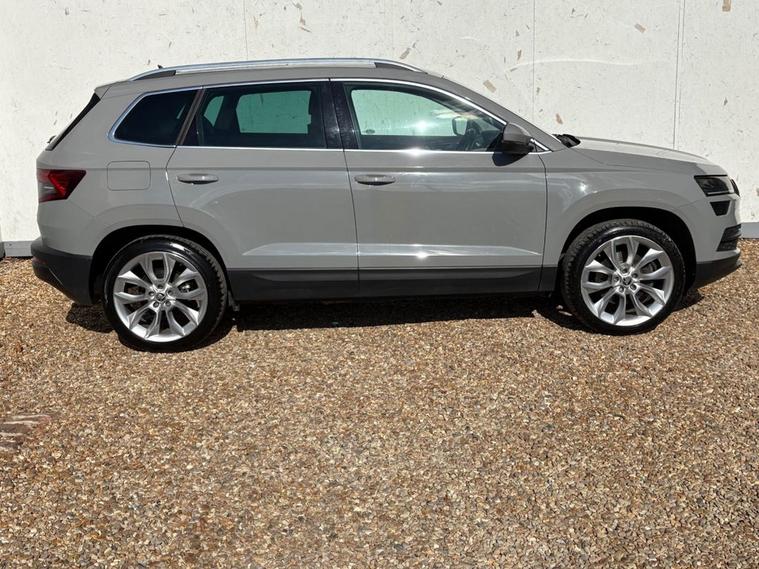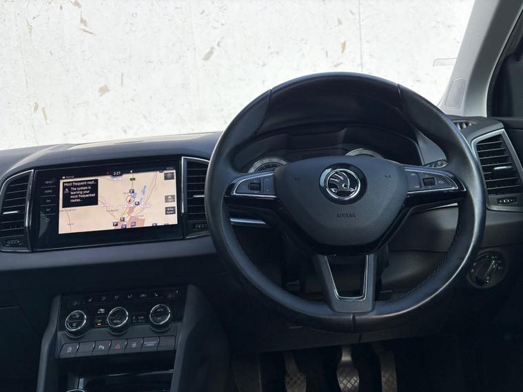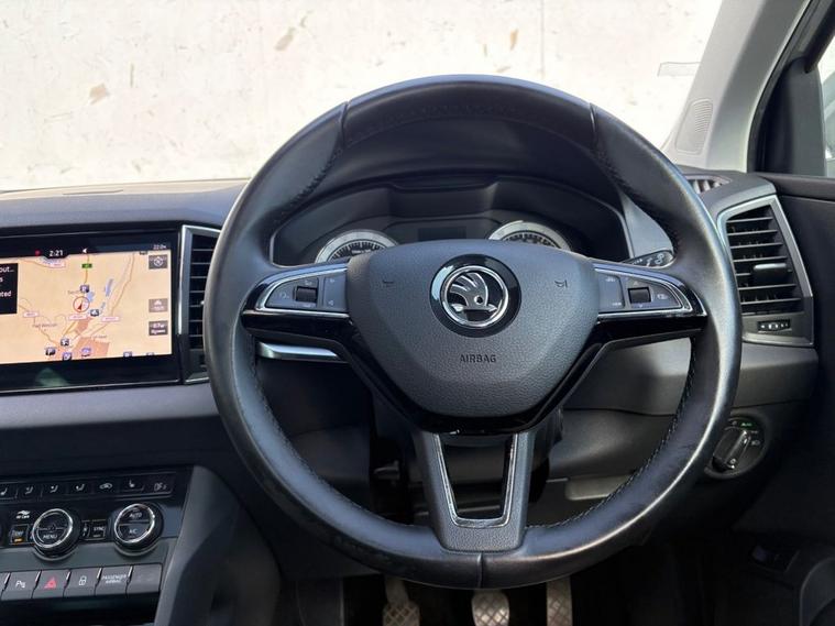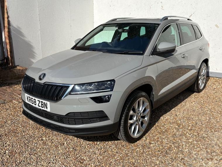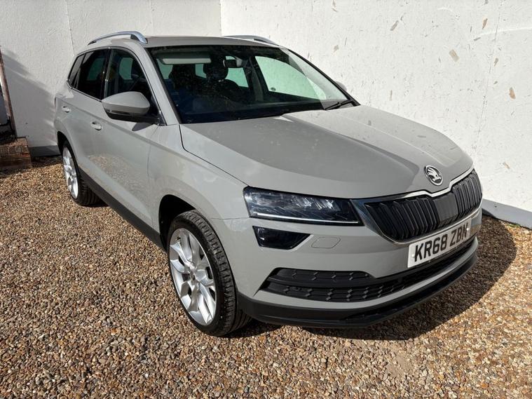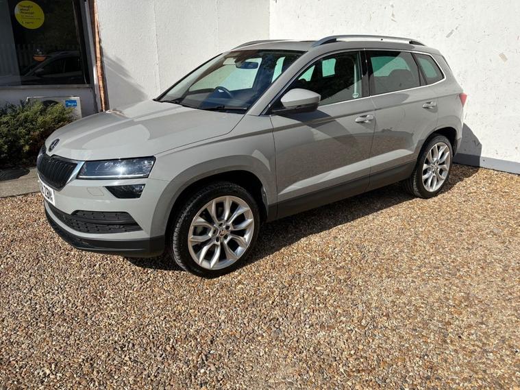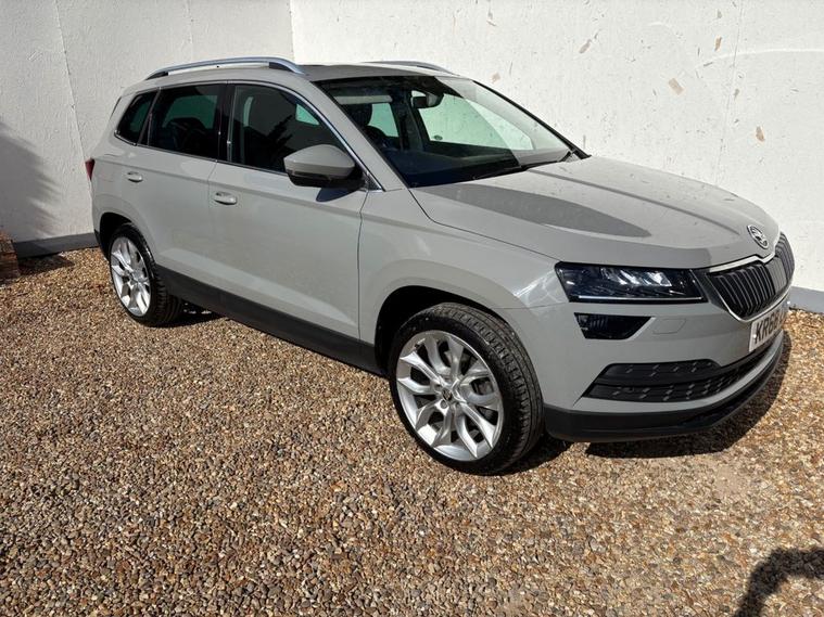 ONLY 2 OWNERS FROM NEW, THIS WELL PRESENTED SKODA KAROQ FINISHED IN GREY. COMES WITH 2 KEYS, FULL SERVICE HISTORY AND FEATURES INCLUDING, TOUCHSCREEN SATELLITE NAVIGATION, APPLE CARPLAY/ANDROID AUTO, DUAL CLIMATE CONTROL WITH AIR CONDITIONING, BLUETOOTH HANDS-FREE, FULL LEATHER TRIM, ELECTRIC FRONT SEATS WITH DRIVERS MEMORY SEAT, HEATED FRONT SEATS, FULL PANORAMIC GLASS WITH ELECTRIC SUNROOF, FRONT AND REAR OPTICAL PARKING SENSORS WITH REVERSING CAMERA, DAB DIGITAL RADIO WITH USB POINT, BLUETOOTH MEDIA CONNECTIVITY, MULTI FUNCTION LEATHER STEERING WHEEL, CRUISE CONTROL, ELECTRIC OPERATING BOOT, NORMAL/ECO/SPORT/SNOW DRIVING MODES, 4X4 DRIVE MODE, AUTO START/STOP, AUTO LIGHTS, 4 X ELECTRIC WINDOWS, ELECTRIC POWER FOLD MIRRORS, KEYLESS START/STOP, 6 SPEED MANUAL GEARBOX, REMOTE CENTRAL LOCKING AND 19 ALLOY WHEELS.
