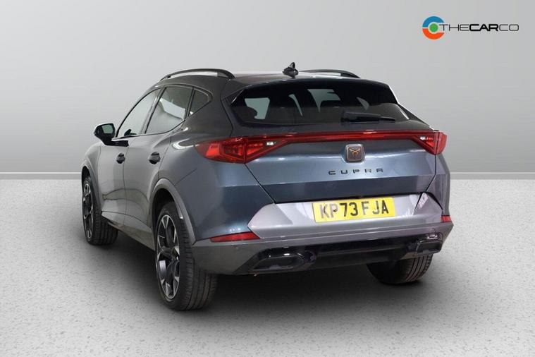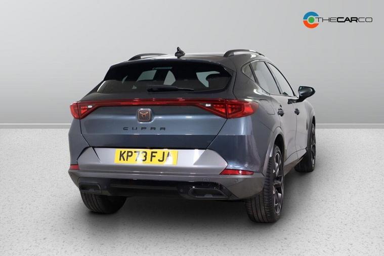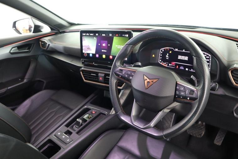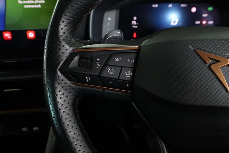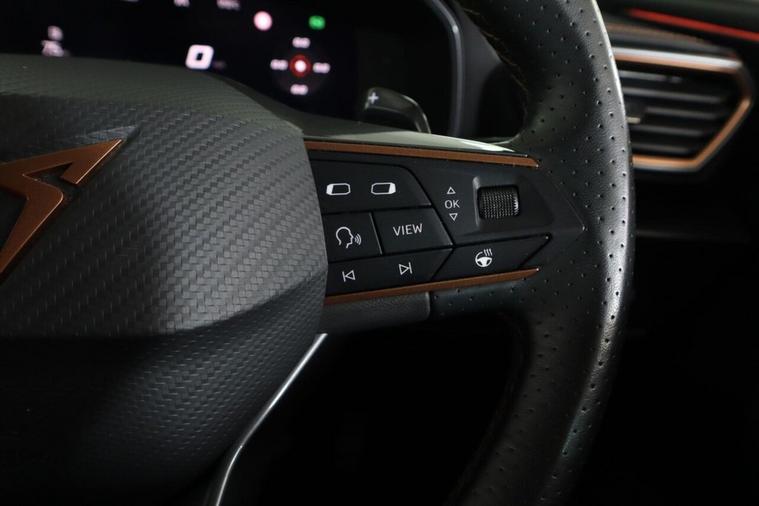 This 2023 CUPRA Formentor TSI V2 is a superb example, having had only one owner since new. This stylish SUV is powered by a responsive 1.5 litre petrol engine, meeting Euro 6 emissions standards. Inside, you'll find a comfortable and functional cabin featuring a leather multi-function steering wheel that is both heated and equipped with gear shift paddles for an engaging driving experience. For convenience and safety, this Formentor includes a rear view camera and park assist with front and rear sensors, making manoeuvring effortless. Travel with ease thanks to the predictive adaptive cruise control with speed limiter, and enjoy excellent visibility with the bright LED headlights. The performance of this CUPRA Formentor is a key highlight, achieving 0-62mph in just 8.9 seconds. This brisk acceleration demonstrates its capability and makes it a more dynamic choice compared to many other vehicles in its class. The combination of its advanced features, single owner provenance, and spirited performance makes this 2023 CUPRA Formentor TSI V2 a truly appealing option for those seeking a well equipped and enjoyable driving experience.