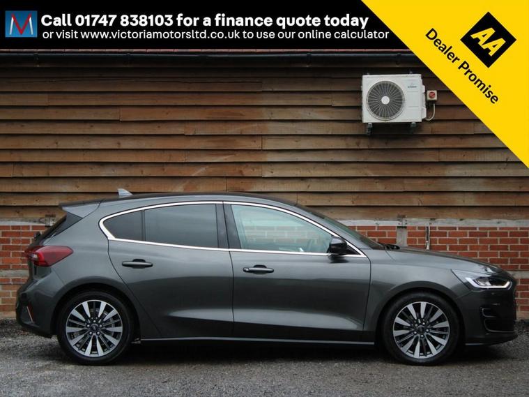 ***FOR VIEWINGS AND TEST DRIVES CALL US ON 01747692736 TO BOOK AN APPOINTMENT***Superb high spec new shape Titanium Vignale Focus automatic fitted with Fords 1.5 turbo diesel Euro6 ULEZ compliant engine producing an impressive 60 mpg combined finished in grey metallic with specification including full individual leather trim with heated seats, digital cockpit, the new wide touch screen media unit with satellite navigation, DAB radio, apple car play meaning you can mirror the apps from your phone onto the media screen including Google maps and Spotify, rear parking camera, bluetooth, media connections, parking aid, auto air conditioning, auto lights, cruise control, upgraded sound system, alloy wheels and more, 1 owner, 34000 miles, service history, great looking car***PART EXCHANGE AVAILABLE***USE THE FINANCE CALCULATOR ON OUR WEBSITE dealer's website AND QUOTE YOURSELF A MONTHLY PAYMENT FIGURE TODAY WITH ZERO DEPOSITS AVAILABLE***