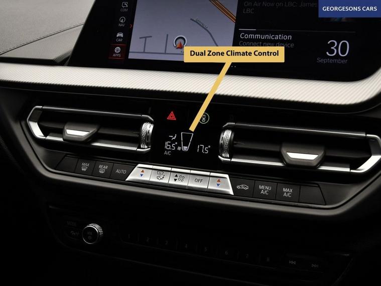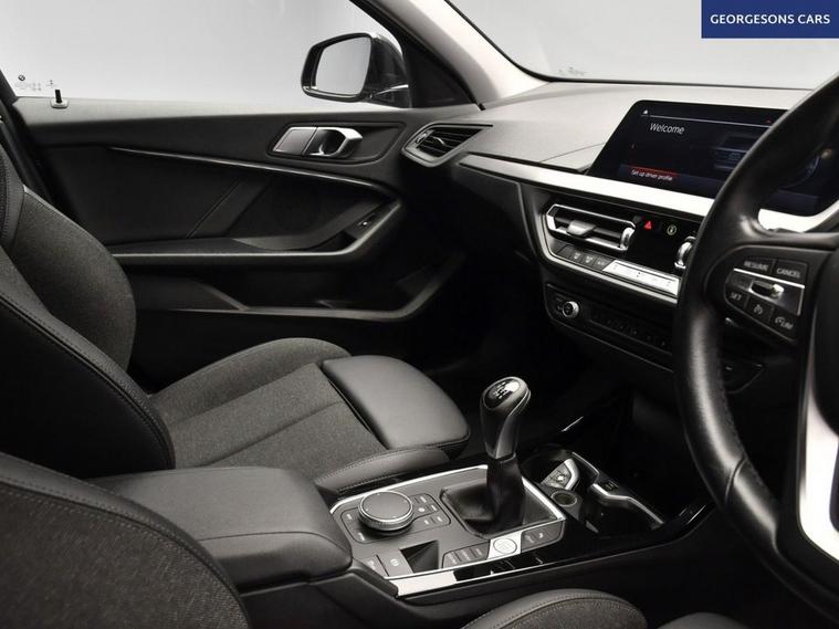 This BMW 1 Series 1.5 118i Sport combines a responsive 1.5-litre turbo petrol engine with 136hp, delivering 0-62mph in 8.5 seconds and up to 52.3mpg in this front-wheel-drive setup with a precise 6-speed manual transmission. The Sport trim enhances the dynamic appeal with 17-inch alloy wheels, sporty styling, and a tuned chassis for engaging handling. With five services, this 1 Series is in excellent condition. Navigate effortlessly with Apple CarPlay, Bluetooth, and DAB radio, ensuring seamless connectivity on every journey. Parking is a breeze thanks to the parking sensors, providing confidence in tight spaces. Stay comfortable with dual-zone climate control, offering personalized cooling year-round. Cruise control with speed limiter enhances relaxation on highways. Selectable drive modes provide tailored performance, whether for efficiency or spirited driving. Start-stop technology improves fuel economy in traffic, and the push-button start adds daily convenience. The spacious five-door hatchback design includes a 380-litre boot for practicality. Contact us today to test drive this premium supermini!