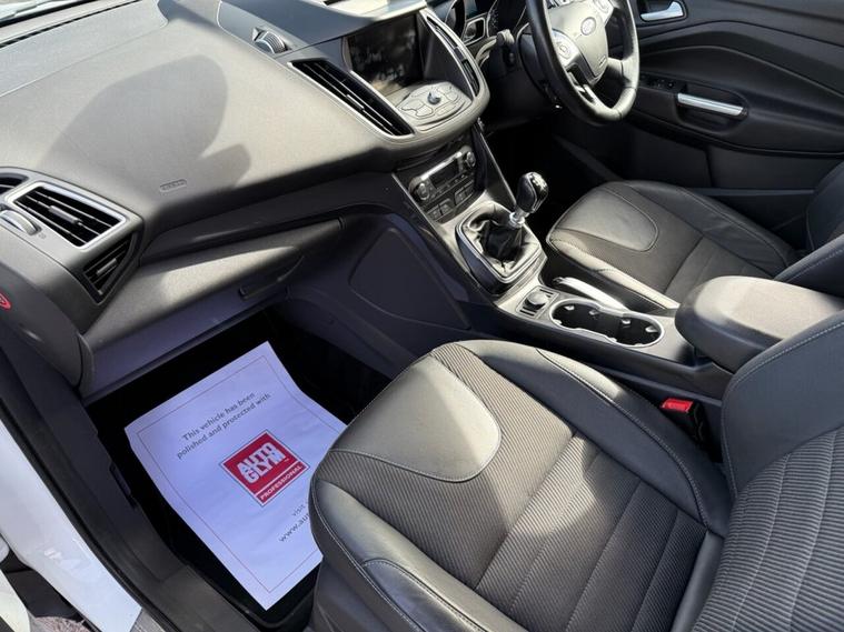 Discover this exceptional white 2016 Ford Kuga TDCi Titanium, boasting remarkably low mileage for its age at just 50, 104 miles and having had only two owners. This Euro 6 compliant 2.0L diesel model comes with 12 months MOT and 3 months warranty offering peace of mind. Inside, youll appreciate the convenience of Dual Zone Electronic Automatic Temperature Control for personalised comfort, along with Bluetooth hands free phone connectivity for safe and easy communication on the go. The automatic headlights, which include an automatic on function, ensure optimal visibility in varying light conditions. This Kuga Titanium stands out with its impressive fuel economy, achieving an outstanding 60 miles per gallon, which is significantly better than many other vehicles in its class. Coupled with its low CO2 emissions, this makes it a more economical and environmentally conscious choice. The combination of its efficient 2.0L diesel engine, low mileage, and desirable Titanium trim level makes this Ford Kuga a compelling option for those seeking a well maintained and economical family car.