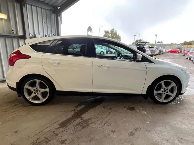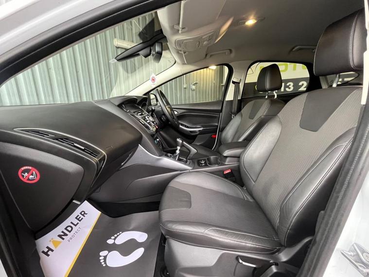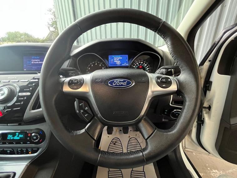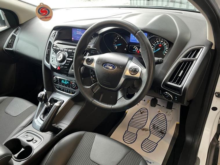 HAVE YOU READ OUR REVIEWS? PLEASE DO! NOTE- SIMILAR VEHICLES IN STOCK. THIS TOP SPEC FORD FOCUS IS IN THE MOST DESIRABLE COLOUR- WHITE WITH HALF BLACK LEATHER INTERIOR AND EXTREMELY LOW MILES FOR THE AGE-42K. WITH ONLY ONE OWNER FROM NEW, IT IS CLEAR IT HAS BEEN LOVED AND MAINTAINED. WOULD MAKE A GREAT 1ST TIME CAR WITH ITS LOW INSURANCE AND RUNNING COSTS. SUPPLIED WITH A FULL YEARS MOT AND FULL SERVICE HISTORY ATTACHED WITH 13 STAMPS- LAST AROUND 41K! MANY EXTRAS INCLUDING A MULTI FUNCTIONAL STEERING WHEEL, CRUISE LIMITOR, CRUISE CONTROL, STOP/START, PARKING SENSORS, REVERSE CAMERA, AUTO HEAD LIGHTS, USB, VOICE CONTROL AND BLUETOOTH. COMES WITH 2 KEYS. ONLY £35 ANNUAL TAX! ALSO- ALL OF OUR VEHICLES ARE SUPPLIED WITH A COMPLIMENTARY 12 MONTHS AA BREAKDOWN COVER AND 3 MONTHS WARRANTY (RESTRICTIONS APPLY). PLEASE NOTE- THE ABOVE VEHICLE SPECIFICATION IS CONFRIMED AND CORRECT. THE SPECIFICATION LISTED ELSEWHERE MAY SOMETIMES BE INACCURATE SO PLEASE CHECK WITH THE SALES EXECUTIVE WHEN ENQUIRING TO CLARIFY THIS PRIOR TO PURCHASE.