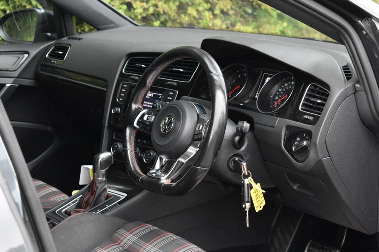 2014/64 VW Golf GTI DSG Bluemotion Tech 5 door hatchback - Semi Automatic - Carbon Grey with Jacara Tartan cloth interior - 93k miles - 3 former keepers - 2 remote keys - VW main dealer and independent garage service history - Gearbox serviced in 2023 - just serviced for sale by VW specialist - fresh 12 months MOT - Platinum warranty - full 12 months AA roadside assistance also included! Freshly refurbished alloy wheels! Rear Sun Protection Glazing!