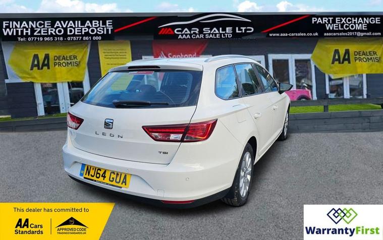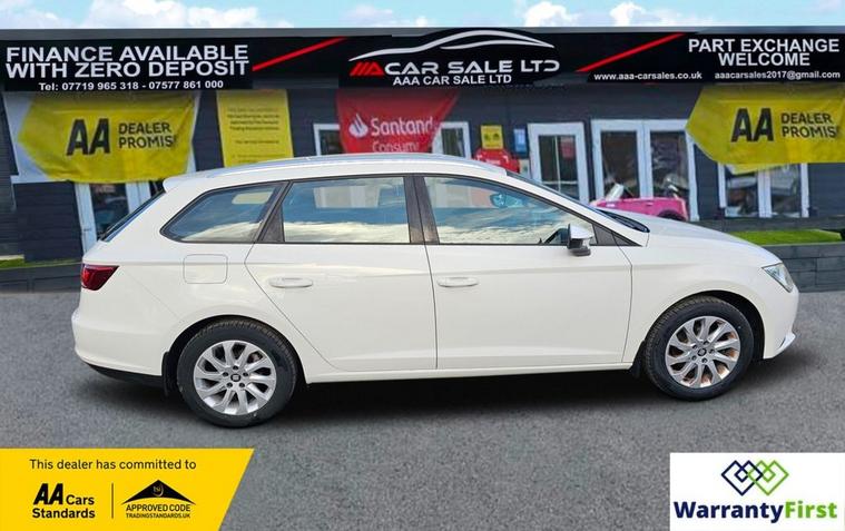 **AAA CAR SALES DARLINGTON LTD HAVE THE PLEASURE TO PRESENT THIS SEAT LEON 1.2 TSI SE Sport Tourer 5dr Petrol Manual Euro 5 (s/s) (105 ps) IN SPECIAL SOLID WHITE PAINTWORK..SERVICE HISTORY =9K, 18K, 28K, 37K, 44K, 54K, 62K, 66K, 71K, 78K, 85K, 91K AND A SERVICE BY OUR TEAM AT 97K....2 KEYS +12 MONTHS AA COVER, 2 KEYS, ALL OUR CARS GO THROUGH 72 POINT INSPECTION, ALL OF OUR CARS COME WITH 12 MONTHS AA BREAKDOWN COVER, FRESH MOT WITHOUT ADVISORIES, INTERIM SERVICE ** HPI CHECKED VIA EXPERIAN, 3 MONTHS WARRANTY WITH THE OPTION TO UPGRADE **AUTOTRADER CUSTOMER SERVICE AWARD 2019, 2020, 2021, 2022, 2023 & 2024 YEAR ON YEAR***, WE ARE OPEN 7 DAYS A WEEK FOR YOUR CONVIENIENCE, CALL 01325950841 OR EMAIL US AT hello dealer's website or visit our website dealer's website CAN BUY WITH FULL CONFIDENCE FROM AAA CARS CHECK OUR AUTOTRADER REVIEWS FOR FULL PEACE OF MIND,