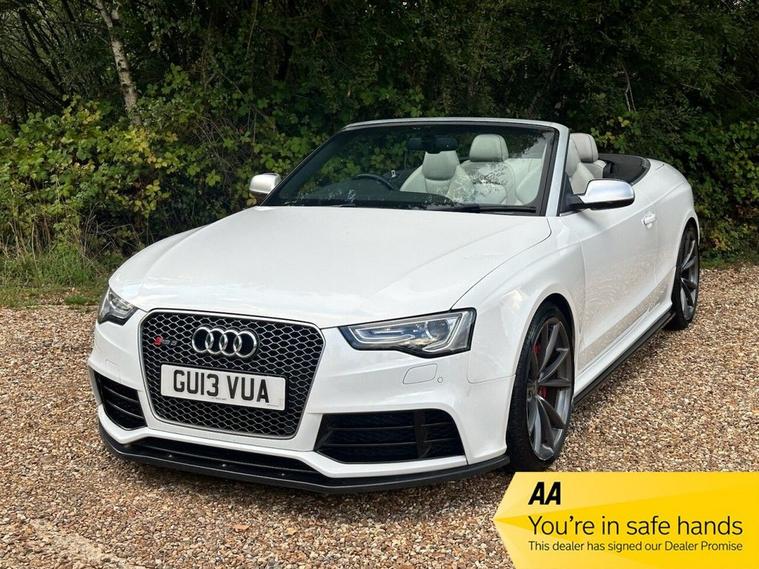 Here we have an absolutely stunning low mileage example Audi RS5 Cabriolet Quattro finished in white Equipped with sat nav, heated leather, Bluetooth, cruise control, climate control, switchable drive modes and more. Call us today to arrange a test drive