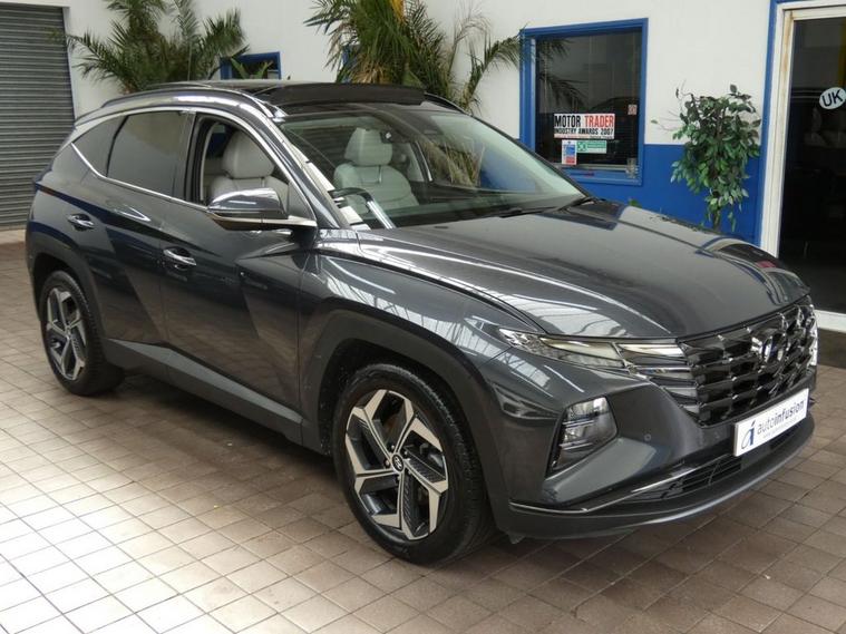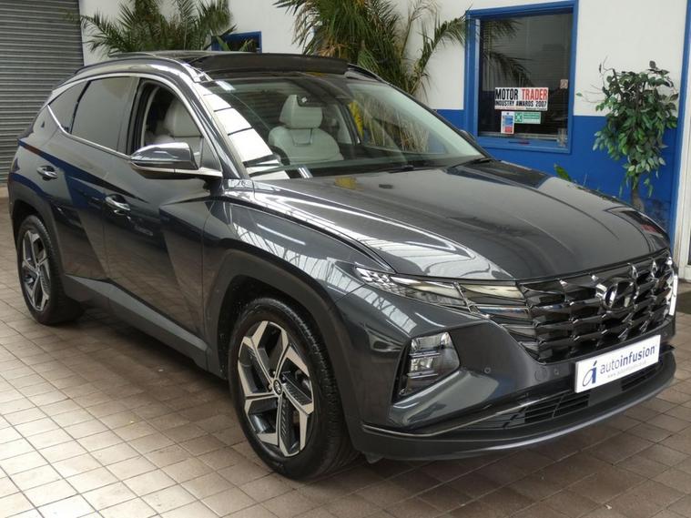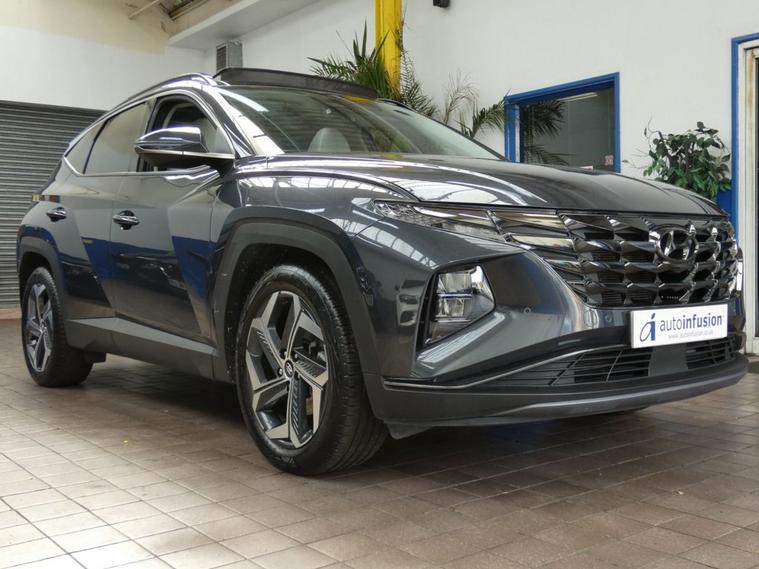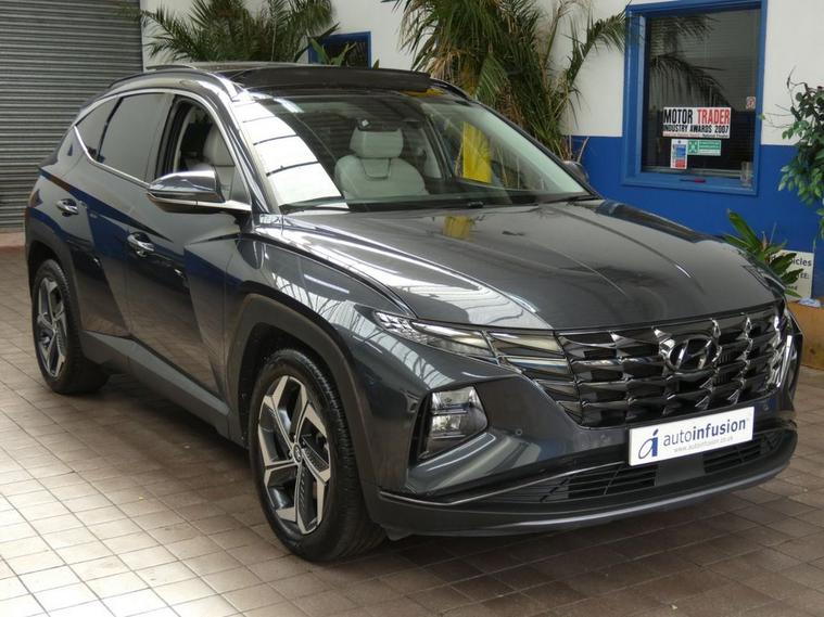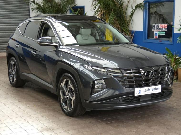 Stunning example, This Hyundai Tucson suv 2WD is a sleek and efficient petrol suv that combines modern design with advanced technology. Finished a metallic shade of grey, this Tucson is styled to impress with two tone alloy wheels, sharp LED headlights, giving it a refined yet sporty presence on the road. Inside, youll find a comfortable leather interior equipped with automatic air conditioning to keep every journey pleasant and relaxed. At the heart of its tech setup, the Hyundai multimedia system brings all your connectivity needs to life, featuring Sat nav, DAB radio, Bluetooth and seamless smartphone integration, including Apple CarPlay and Android Auto, for easy access to music, maps and apps. Maneuvering is effortless with the integrated reverse camera, making parking in tight spots a breeze. Combining Hyundais reliable hybrid efficiency with smart technology and stylish design, this Tucson is an ideal choice for anyone seeking an efficient yet premium suv experience. This vehicle is compliant with Clean Air Zone (CAZ) or Ultra Low Emission Zone (ULEZ) regulations, meaning it produces low emissions and helps to improve air quality in our cities. Genuine low mileage, 1 owner from new. excellent service history 2 services to 18, 215 miles Oct 2024. Hyundai warranty till July 2027. Please call for more details, Autoinfusion Ltd, is a family run business with over 30 years motoring experience. On our website you will find our vehicles are generally advertised with upto 100 exterior and interior pictures, 360 interior images, exterior panoramic views and web video showcasing our stock. As an AA approved garage, prior to sale, the majority of our vehicles are inspected by an AA trained technician and pass a full 128 multi-point AA inspection, these cars are highlighted on our website with the AA logo. Please note AA inspections are also available on request if the vehicle has not yet been inspected. All of our stock is constantly price checked ensuring you pay and receive the best package. You will also find details of special promotions on our website. Contact us to book an appointment for a viewing and test drive. We can conduct a live viewing of the vehicle to your mobile device or send you a personalised video highlighting the key features or anything else you may require, which can be viewed in your own time. With our Finance options we can provide class leading packages and rates. We highly recommend you reserve this car on-line , please visit dealer's website or call one of our sales specialists for more information. We look forward to welcoming you to Autoinfusion.