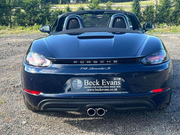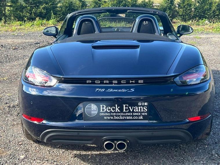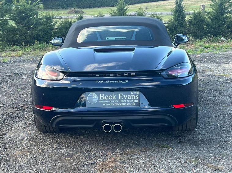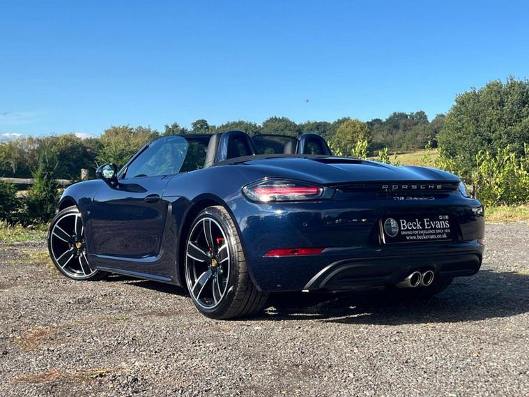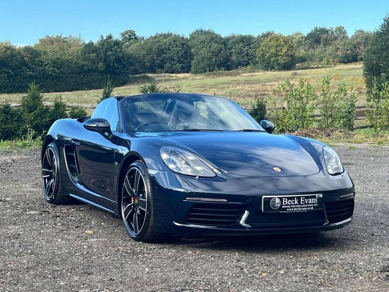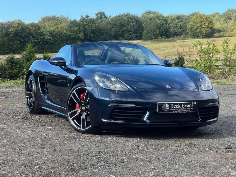 NATIONWIDE DELIVERY AND CLICK AND COLLECT Available. Here At Beck Evans We Are Proud To Introduce This Stunning Porsche 718 Boxster S Semi Auto Convertible, A True Masterpiece Of Engineering and Design. With Only Two Owners From New and Comes With Porsche Main Dealer and Specialist Service History. Not to be Missed you wont find another with over 18, 000 Pounds worth of Extras when New, This Vehicle is Finished in Special Factory order Paint Night Blue Metallic with Black Leather Package with Leather Seats, 14 Way Electric Fully Electric Sport Seats, Heated Seats, Black Convertible Top, LED Main Headlights Including Porsche Dynamic Light system Plus PDLS Plus, Reversing Camera With Parking Assist Sensors Front and Rear, Porsche Doppelkupplung PDK, Porsche Active Suspension Management PASM, Sport Chrono Package Including Mode Switch, 20 Inch Carrera Sport Alloy Wheels Painted in Gloss Black, BOSE Surround Sound System, Satellite Navigation, DAB Radio, Bluetooth, Phone Prep, Dual Zone Automatic Climate Control Air Conditioning, Leather Multifunction Steering Wheel, Automatic Lights, Rain Sensors, Electric Folding Wing Mirrors, Roll-Over Bars Painted in Exterior Colour, Cruise Control with Speed Limiter, Heated Multifunction Steering Wheel, Dynamic Modes, Heated Rear Screen, Sport Plus Modes, Selectable Driving Modes with Affect Suspension, Traction Control and Stability Control, Voice Activated Controls, Isofix Rear Seats, Remote Central Locking, Alarm, the Porsche 718 is sure to turn heads wherever you go. Its sleek and sporty exterior is matched only by its powerful performance and precision handling. Whether you're cruising down the motorway or taking on winding country roads, the Porsche 718 delivers an exhilarating driving experience like no other. Don't miss your chance to own this exceptional Porsche 718. Contact us today to schedule a test drive and experience the thrill of driving a true icon of automotive excellence. Additional fees may apply, please note, not all cars are kept on site please call to make appointment and to avoid disappointment. pre delivery check, This vehicle will be sold with the benefit of A Optional 12 Month WARRANTY WITH MAIN DEALER LABOUR RATES, charged at an additional Cost. Hpi Checked, Part Exchanges Welcome. Low Rate Finance/PCP Finance Options Available, Over 100 Cars and Up To 50 pictures Available Visit Our Website dealer's website call now Tel: 02030182143 USED CAR DEALERS 2022 WINNERS