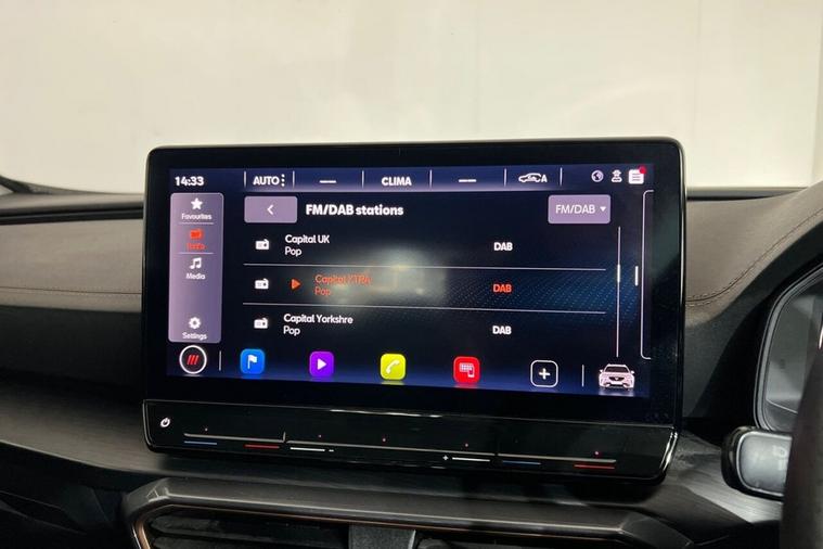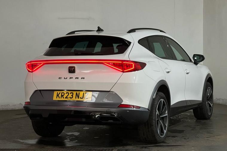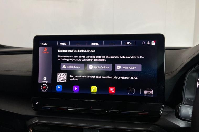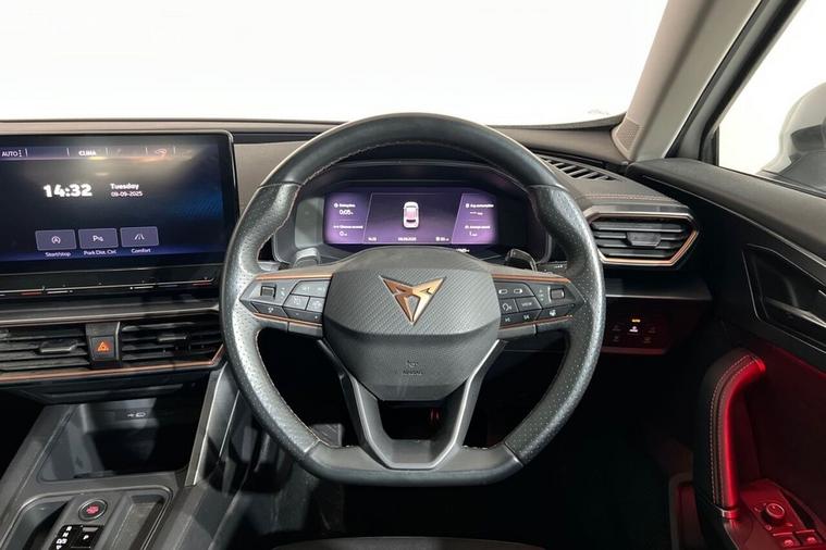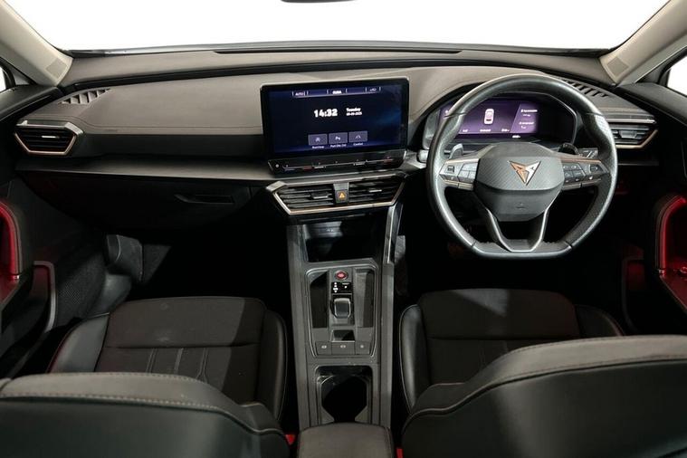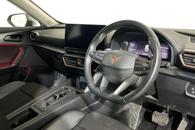 This 2023 CUPRA Formentor TSI V1 offers a pristine ownership history, having had only one owner since new. This Euro 6 compliant 1.5 litre petrol model is presented in excellent condition with its MOT valid until May 2026 and a clear vehicle history check. Key features include Kessy keyless entry and start, daytime running lights with automatic headlight control, and rear parking sensors for added convenience. The leather multi-function steering wheel is heated and includes gear shift paddles, enhancing the driving experience. The Formentor TSI V1 boasts impressive performance, achieving 0-60mph in just 8.9 seconds, demonstrating its responsive acceleration. This performance, combined with the inclusion of Predictive Adaptive Cruise Control with Speed Limiter, sets it apart from other vehicles in its class. These advanced features contribute to a more relaxed and enjoyable journey, whether navigating city streets or embarking on longer trips.