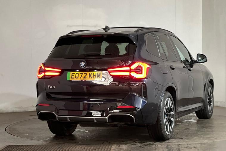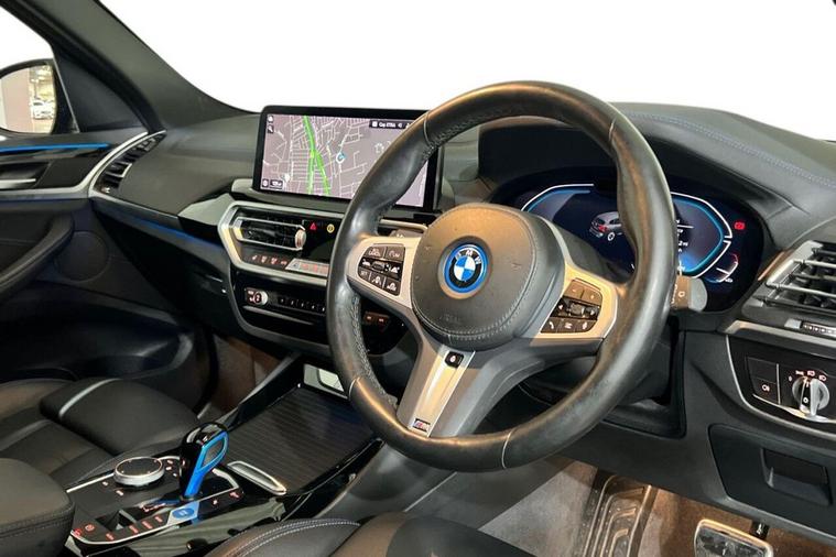 This 2022 BMW iX3 M Sport is a superb example, having had only one owner from new and boasting a clear vehicle history. As a fully electric vehicle, it offers an impressive maximum range of 285 miles when new, making it ideal for both daily commutes and longer journeys. This M Sport variant comes equipped with advanced Laserlights for superior visibility, front and rear parking sensors for effortless manoeuvring, and a rain sensor that automatically activates the headlights. Inside, youll appreciate the convenience of enhanced Bluetooth with wireless charging, and automatic air conditioning for a comfortable cabin environment. The BMW iX3 M Sport provides a substantial 285 mile maximum range, setting it apart from many other electric vehicles. Furthermore, its large boot space offers excellent practicality for all your needs. Charging is convenient, with a full charge taking approximately 11 hours and 20 minutes at home using a 7kW charger, while rapid public charging can replenish the battery from empty to 80% in just 32 minutes. This combination of long range, ample storage, and flexible charging options makes the iX3 a compelling choice for electric motoring.