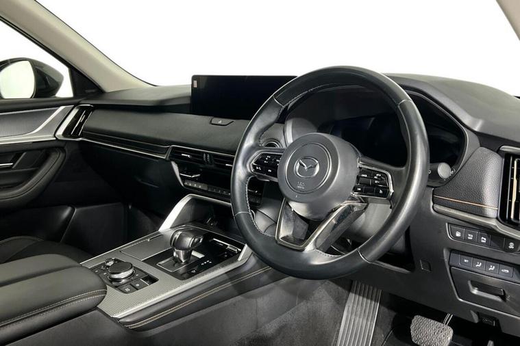 This 2022 Mazda CX-60 e-SKYACTIV Homura is presented with a clear vehicle history check, offering peace of mind for its next owner. This Four Wheel Drive model features a 2.5L Petrol Plug-in Hybrid engine, meeting Euro 6 emissions standards. The Homura trim level includes the Mazda Driver Personalisation System with seat memory, Emergency Lane Keeping with Blind Spot Assist, and dusk sensing headlights. For seamless connectivity, it offers wireless Apple CarPlay and wired Android Auto, alongside heated front seats with three stage settings. The Mazda CX-60 Homura stands out with its impressive performance, accelerating from 0 to 60mph in just 5.8 seconds, demonstrating its capability compared to other vehicles in its class. This impressive acceleration is complemented by a substantial towing weight of 2500 kg, making it a versatile choice for various needs.