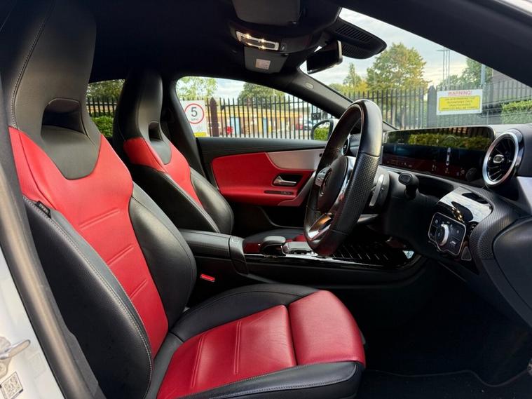 HERE WE HAVE A STUNNING LOW MILEAGE MERCEDES CLA BACKED WITH ITS FULL SERVICE HISTORY INCLUDING A RECENT SERVICE AND 12 MONTHS MOT, VERY WELL MAINTAINED, 2 FORMER OWNERS FROM NEW, WARRANTED LOW MILEAGE, VERY ECONOMICAL, LOVELY SPEC++RED AND BLACK LEATHER INTERIOR++HEATED SEATS++VIRTUAL DASHBAORD++APPLE CARPLAY++ANDROID AUTO++REVERSE CAMERA++PARKING SENSORS FRONT AND REAR++CRUISE CONTROL++LED AUTO HEADLIGHTS++LANE ASSIST++12 MONTHS AA BREAKDOWN COVER INCLUDED, WARRANTY INCLUDED, FINANCE AVAILABLE APPLY WITHIN, HPI CLEAR, OPEN 7 DAYS A WEEK, 2 KEYS, ULEZ AND CLEAN AIR ZONE COMPLIANT