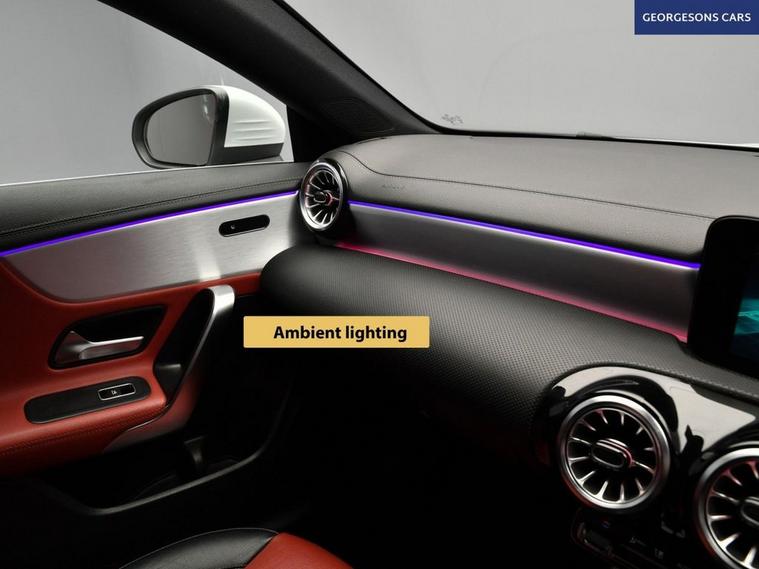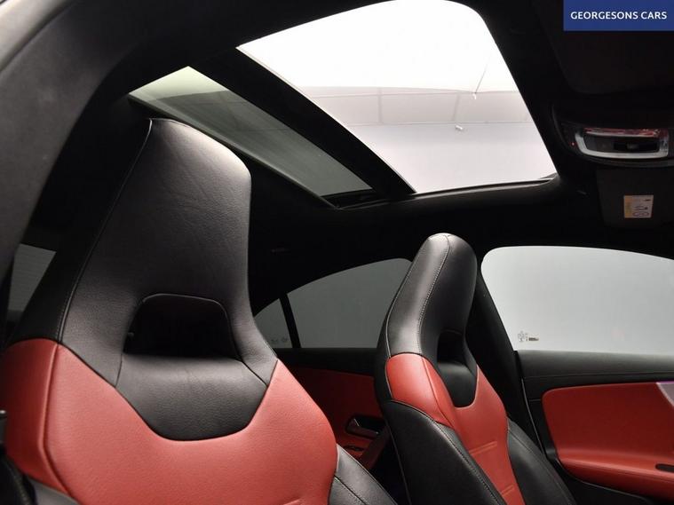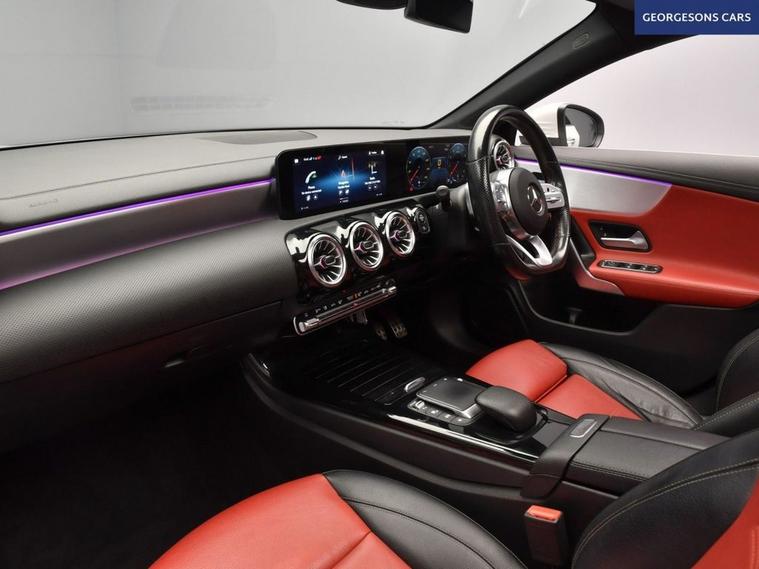 The Mercedes-Benz CLA 1.3 CLA180 AMG Line (Premium Plus 2) combines a responsive 1.3-litre turbo petrol engine with 136hp, delivering 0-62mph in 9.0 seconds and up to 46.3mpg in this front-wheel-drive setup with a smooth 7-speed DCT automatic transmission. The AMG Line (Premium Plus 2) trim enhances the sporty elegance with 18-inch alloy wheels, two-tone red leather seats, and a dynamic chassis for refined performance. With one owner and four services, including three at Mercedes dealers, this CLA is in excellent condition. Enjoy the electric sunroof for an open-air experience, while ambient lighting creates a sophisticated interior atmosphere. Navigate effortlessly with integrated satellite navigation, Apple CarPlay, Bluetooth, and DAB radio, ensuring seamless connectivity on every journey. Parking is a breeze thanks to the reverse camera and parking sensors, providing clear visibility and confidence in tight spaces. Stay comfortable with dual-zone climate control and heated leather seats, offering personalized warmth year-round. Cruise control with speed limiter and lane assist enhance safety and relaxation on highways. Paddle shift gears provide precise control, while selectable drive modes offer tailored performance, whether for efficiency or spirited driving. The sleek four-door coupe design includes a 460-litre boot for practicality.