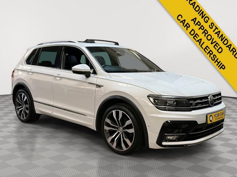 Command the road in style with the Volkswagen Tiguan 2.0 BiTDI R-Line 4Motion, delivering an impressive 240 PS through its smooth DSG gearbox and intelligent all-wheel drive. Designed for comfort and performance, it boasts diamond cut alloys, a panoramic roof, memory electric seats, and heated seats, alongside auto tri-zone climate control for ultimate refinement. The cabin features a digital instrument display, wireless charging pad, DAB radio, Bluetooth, Apple CarPlay, Android Auto, and sat nav for seamless connectivity. Practicality meets technology with adaptive cruise control, auto lights, an electric tailgate, and a rear camera, ensuring every journey is both effortless and exhilarating.