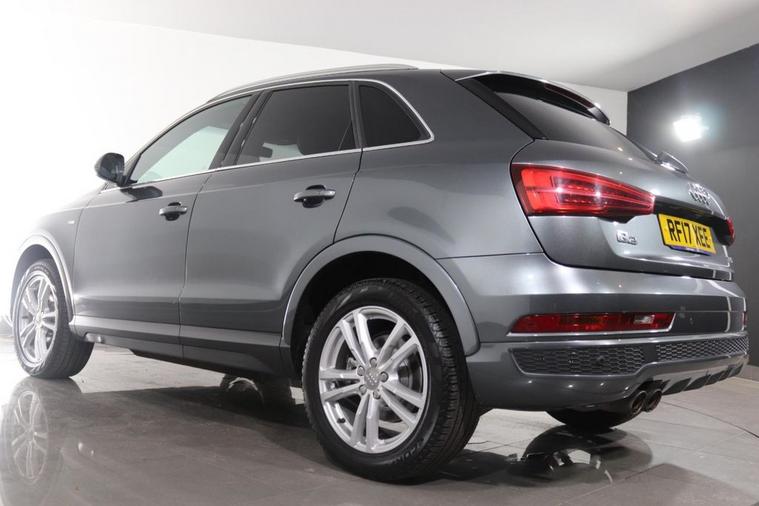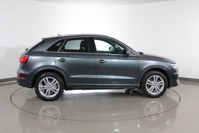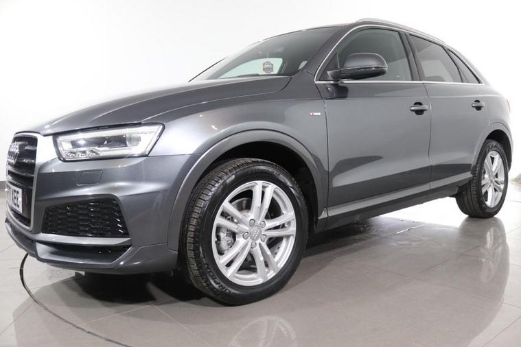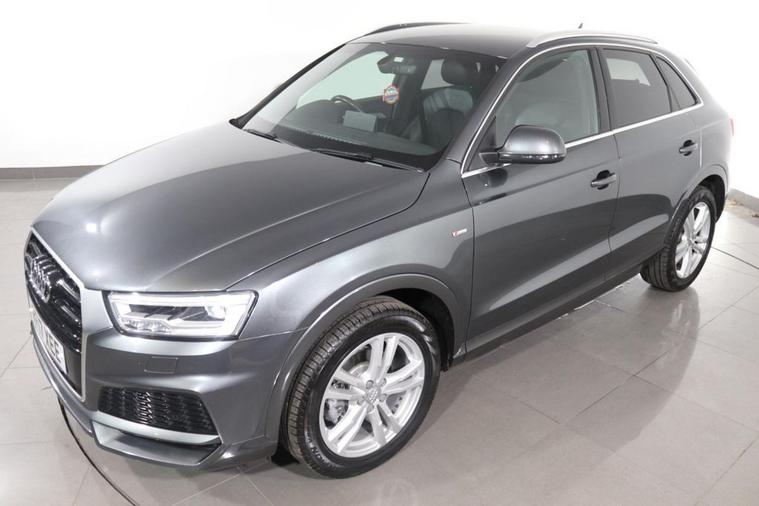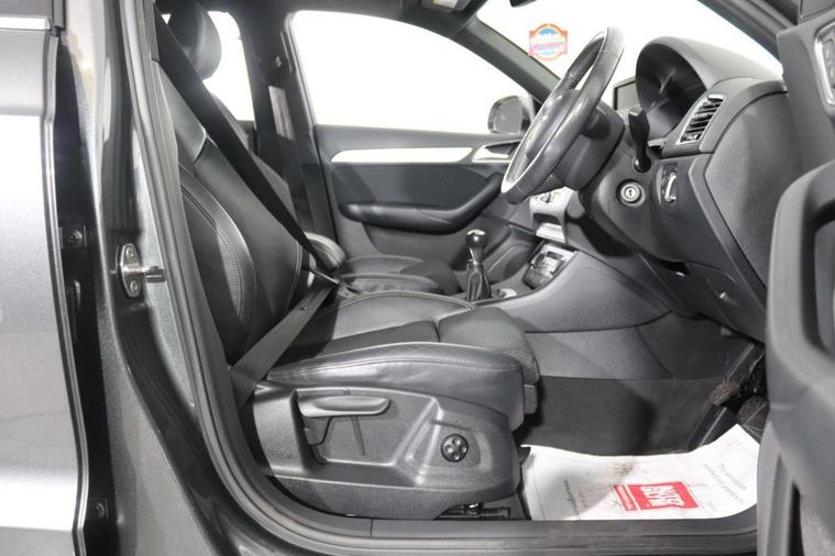 AWB Motors are pleased to present this stunning Audi Q3 finished in Monsoon Grey complemented by 18in ALLOY WHEELS and Front Fog Lights. Sit in luxury with HEATED HALF LEATHER Interior. At the heart of the dash is a Colour Display showing functions such as SATNAV. Make your calls handsfree using the BLUETOOTH Interface. Perfect for listening to your favourite music either from your phone through the MP3 Plugin or simply using the DAB Radio. These alongside all other radio functions can be controlled using the Multifunction Steering Wheel. Park with ease thanks to FRONT AND REAR PARKING SENSORS Fitted. Drive in comfort whatever the journey with both CRUISE CONTROL and CLIMATE CONTROL with AIR CONDITIONING. Safe for your children with ISOFIX Anchorage Points. Other useful ancillaries include Auto Lights and Wipers, POWER FOLD Electric Mirrors, 4 Way Electric Windows and Remote Central Locking. Cheap to run thanks to its Fuel Efficient Engine Engine achieving 50+MPG. Buy with confidence as it has had just 2 OWNERS From New. Maintained very well with 4 Stamp SERVICE HISTORY.