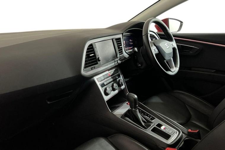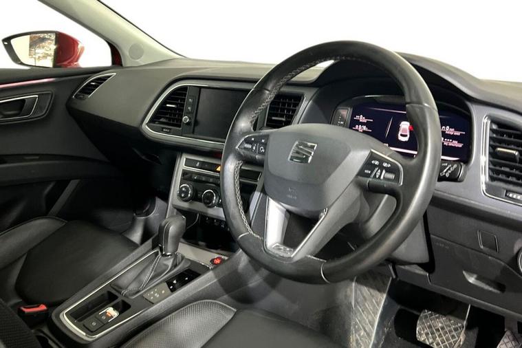This 2019 SEAT Leon TSI EVO XCELLENCE Lux boasts exceptionally low mileage for its age, having covered just 38144 miles, and comes with a clear vehicle history check. As a Euro 6 compliant model, it features a 1.5 litre petrol engine, offering a blend of efficiency and performance. The XCELLENCE Lux trim ensures a premium experience, enhanced by the inclusion of a Winter Pack with heated seats for comfort in colder weather, and a rear view camera for easier parking. Stay connected and entertained with SEAT Full Link Smartphone Integration, supporting Mirror Link, Apple CarPlay, and Google Android Auto. Driving convenience is further elevated by Adaptive Cruise Control, allowing for relaxed journeys, and Keyless Entry and Go with a wireless phone charger for effortless access and charging. The SEAT Leon TSI EVO XCELLENCE Lux is designed to impress, offering a generous boot space for all your needs. Its low CO2 emissions highlight its environmental consideration, making it a sensible choice. The vehicles acceleration is also a notable advantage, reaching 0 to 60 miles per hour in a brisk 8.3 seconds, indicating a responsive and engaging driving experience that sets it apart from many other vehicles in its class.