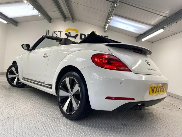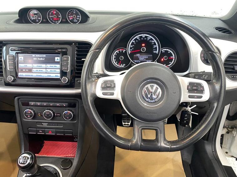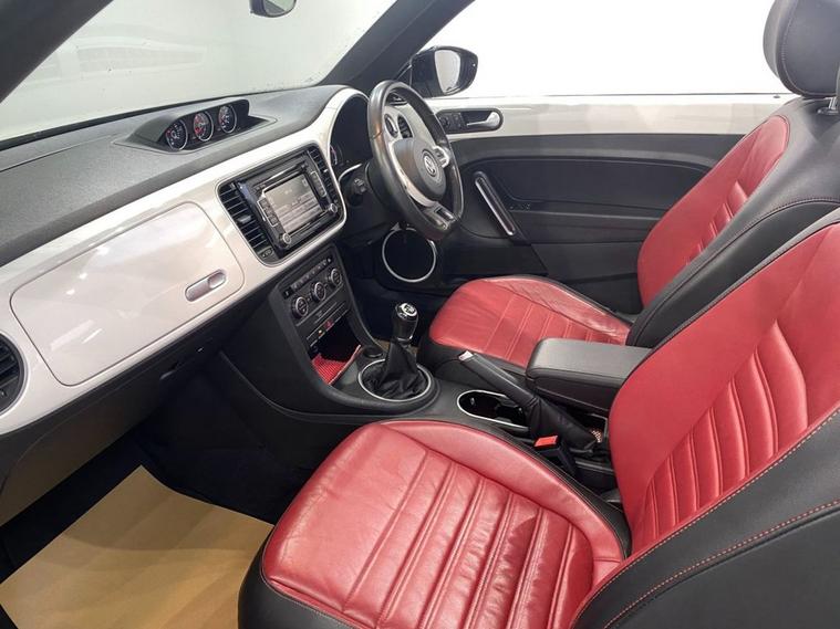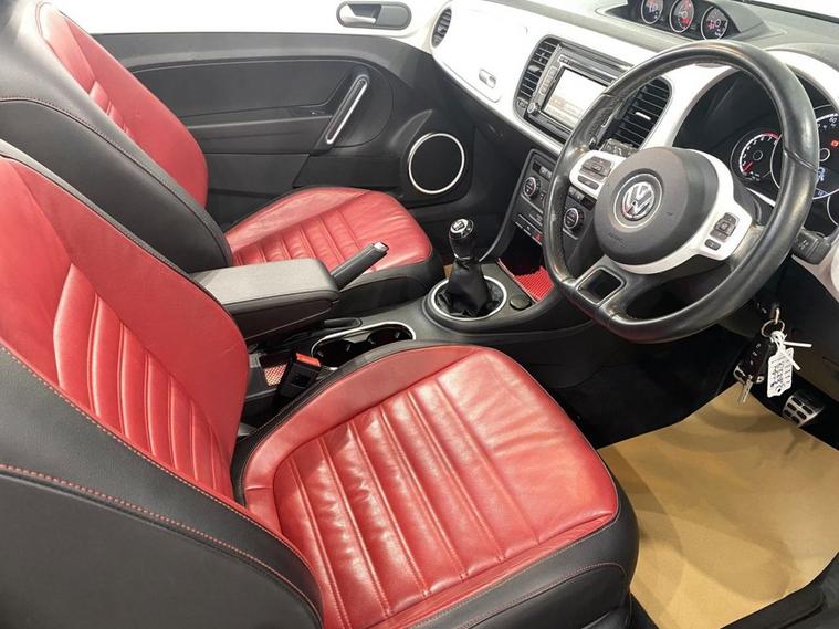 The Beetle Cabriolet is a fun, charismatic and well-built choice for those who prioritize style and comfort in a convertible and this rare 60s Edition has some unique spec and low mileage with comprehensive service history. Its fully colour coded in Candy White and stands on chunky 18 diamond cut alloy wheels - a two-tone boot spoiler completes the sporty exterior. Also included is the optional tonneau cover and wind deflector which does a great job in reducing wind buffeting. Moving inside theres 2-tone read nad black sports seats in full leather upholstery that feature 3-stage electric heating - perfect for the colder weather. Music lovers will enjoy the premium Fender Sound System which also has a boot mounted boom box. Ice cold air conditioning will keep everyone cool and theres also Bluetooth connectivity, cruise control, front and rear park sensors and DAB radio. The electric roof is a quality piece of kit that opens and closes quickly and offers good refinement when in place.