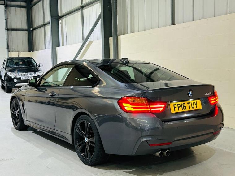 This Stunning Metallic Mineral Grey 420d M Sport has covered 86k miles from new. 1 FORMER KEEPER Front sports seats M Sports Suspension Sun protection glass Brushed Aluminium trim finishers with Black high-gloss highlight High-gloss Shadowline Headlining, Anthracite Full black panel display Brushed Aluminium trim finishers with Black high-gloss highlight Concierge Service Dakota Leather - Black Mineral Grey Metallic Navigation system - BMW Professional Multimedia Real Time Traffic Information Remote Services Free HPI Certificate Provided, Service History, Warranty Provided, All Booklets, Manuals, Carpet Mats etc. Low Emissions Model - ULEZ OK. This 2016 BMW 4 Series 420d M Sport is a superb example, having been cherished by only two owners. It boasts the sporty M Sport trim and is powered by an efficient 2.0L Diesel Engine, meeting the Euro 6 emission standards. Youll appreciate the stylish 19in M Double Spoke Style 442M alloy wheels and the convenience of PDC for parking assistance, including front and rear sensors. Inside, the M Gear Selector Lever in Nappa Leather adds a touch of luxury, while the dual zone automatic air conditioning ensures comfort for all. Stay connected on the go with the Bluetooth hands free facility, complete with USB audio interface and audio streaming.This BMW 420d M Sport offers impressive performance, accelerating from 0 to 60mph in just 7.3 seconds, while also delivering an outstanding fuel economy of 63 mpg. These figures indicate how this vehicle is better than other similar vehicles, as it combines strong performance with exceptional efficiency. Furthermore, its low CO2 emissions and low insurance group make it an economical choice to own and run. Youll also benefit from the generous boot space, providing ample room for luggage or shopping.Any inspection more than welcome ++++ upto 20 photos on website ++++ indoor viewing ++++ 100+ cars in stock ++++ debit card payment welcome ++++ approved finance partner with consumer credit licence held ++++ part exchange welcome ++++ private plate transfers, delivery service all available on request ++++ call to reserve with deposit ++++ Reg FP16TUY