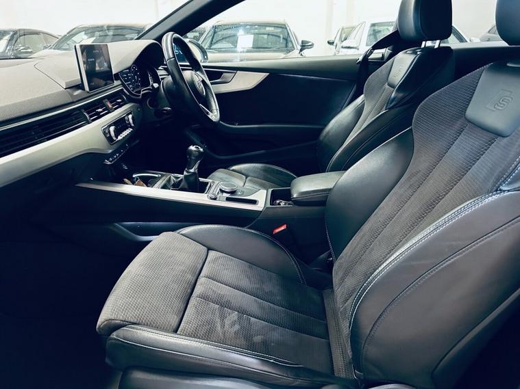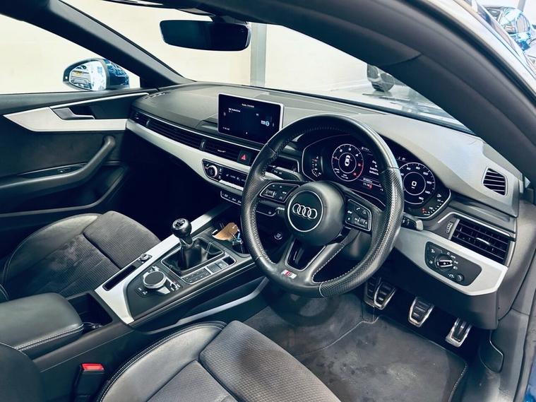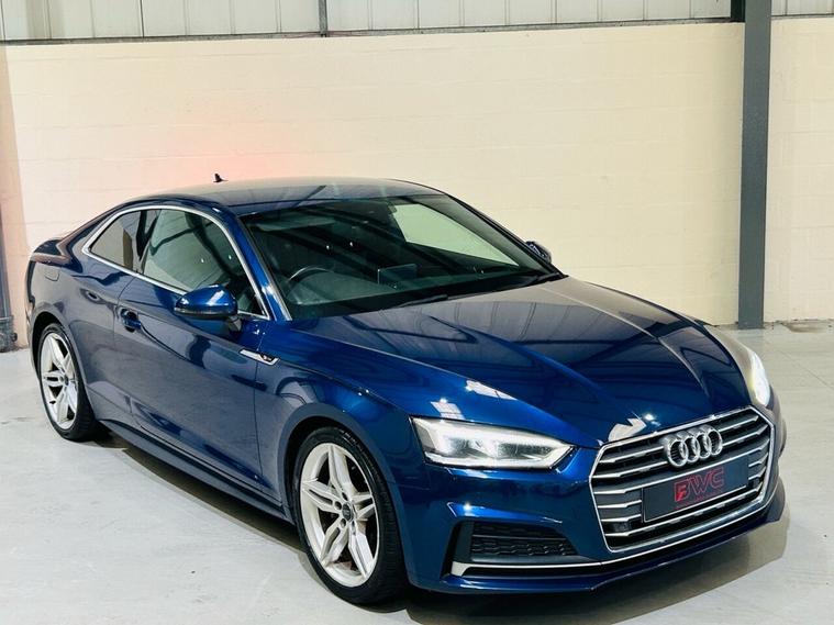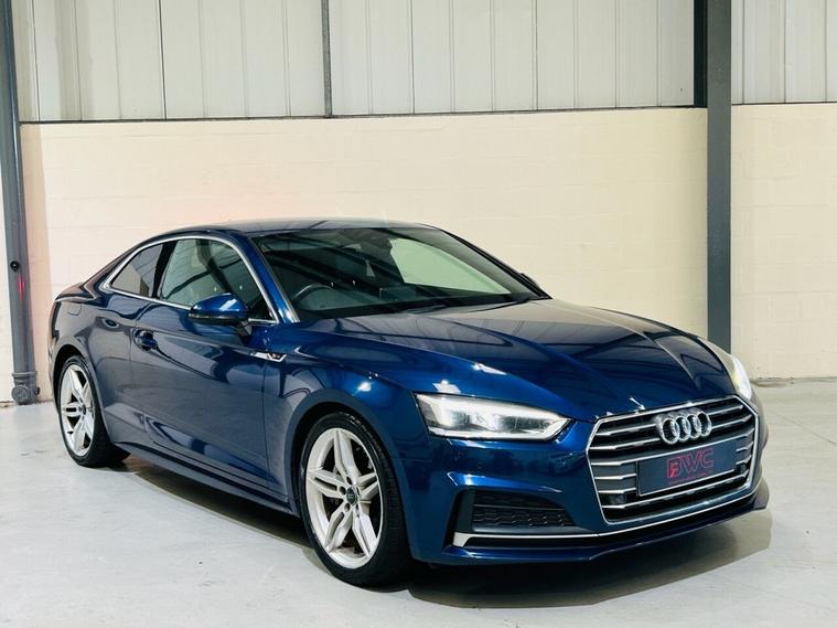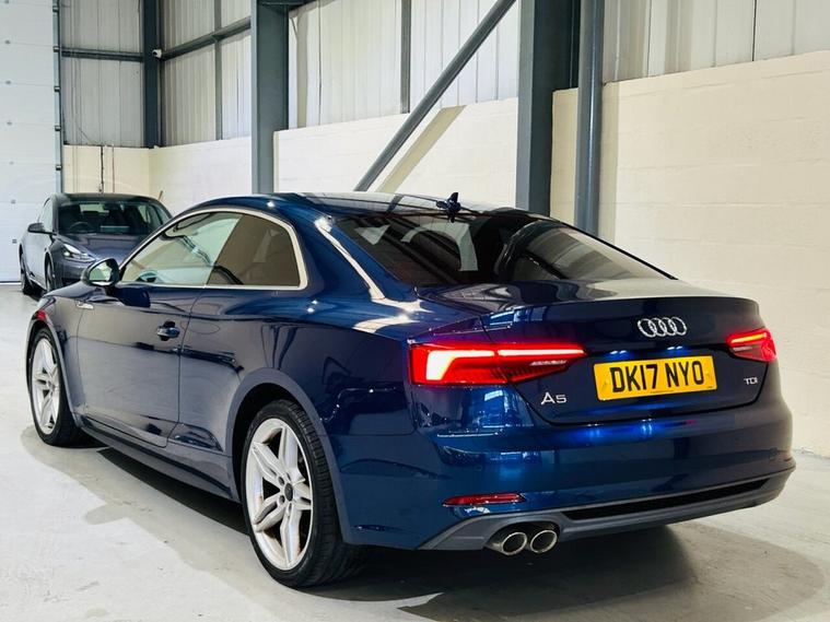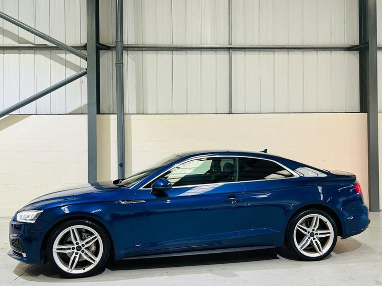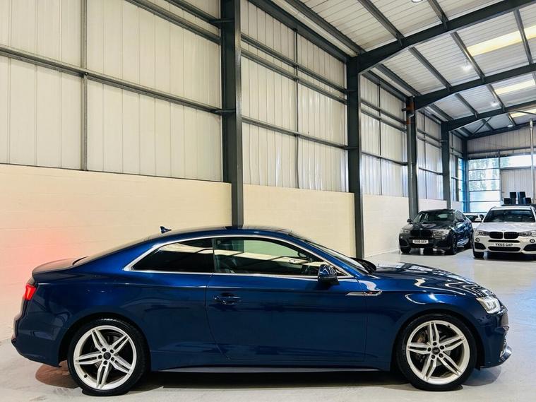 Audi A5 2.0 TDI ultra S line Coupe Manual Euro 6 (190 ps) A stunning example of the Audi A5 Coupe finished in Scuba Blue metallic with S line styling and a premium interior. This model combines sharp looks, excellent efficiency, and strong performance with 190 ps. Comes with service history, showing it has been well maintained. Key Features S line exterior styling pack with sport bumpers and side skirts Black Alcantara and leather front sport seats with embossed S logo Audi Virtual Cockpit with digital driver display Technology Pack 19 5 parallel spoke alloy wheels Metallic paint finish in Scuba Blue Matt brushed aluminium interior trim Additional Information Manual gearbox for a more engaging drive Euro 6 compliant 2.0 TDI ultra engine optimised for economy Excellent balance of performance and efficiency Service history Registration: DK17NYO