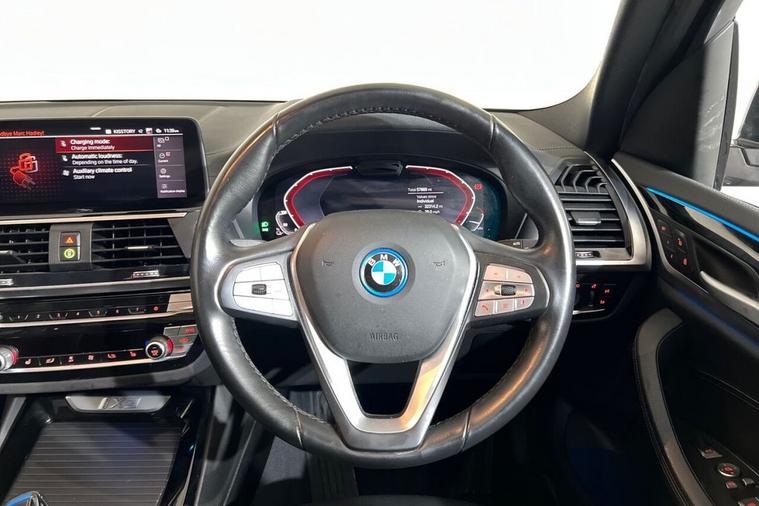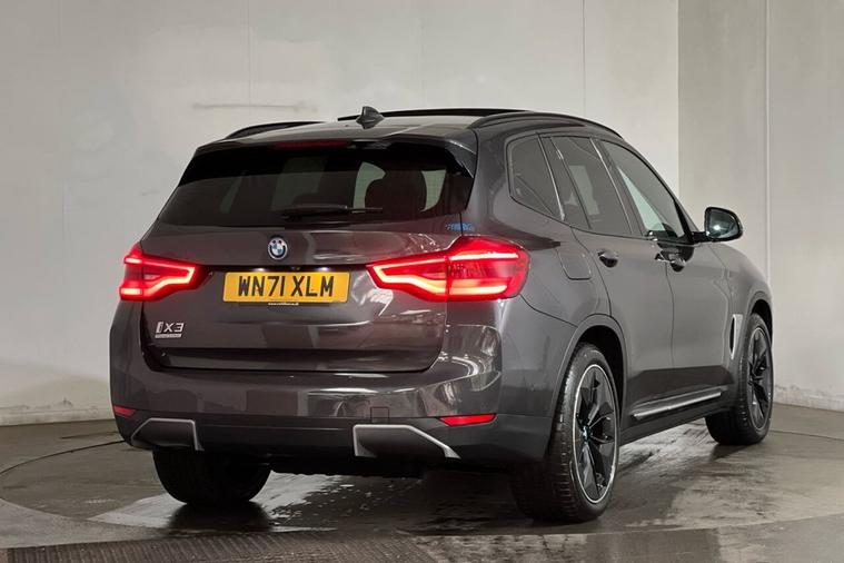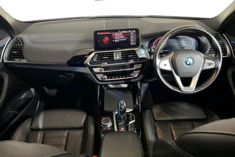 This 2021 BMW iX3 Premier Edition, with only one owner from new, offers an exceptional electric driving experience. As a fully electric vehicle, it boasts a substantial 80 kWh battery, providing a maximum range of 282 miles when new. This impressive range is complemented by convenient charging options, with a full charge at home using a 7kW charger taking approximately 11 hours and 20 minutes, and rapid charging to 80% achievable in just 32 minutes at a compatible public station. The Premier Edition trim level ensures a wealth of desirable features, including Park Distance Control for both the front and rear, along with a Reversing Assist Camera and the advanced Parking Assistant system, making manoeuvring effortless. Inside, youll find the BMW Live Cockpit Professional with Bluetooth connectivity, and a delightful Panoramic Glass Sunroof that can also be opened. Furthermore, the iX3 offers a generous boot space, enhancing its practicality for everyday use and longer journeys, setting it apart from many other vehicles in its class.