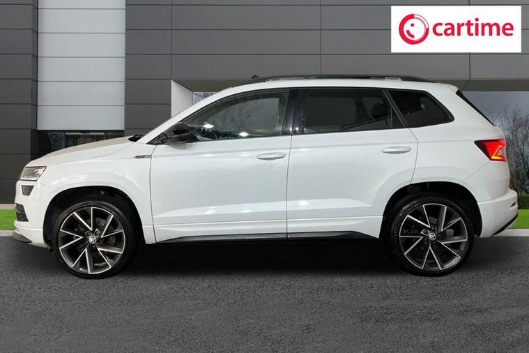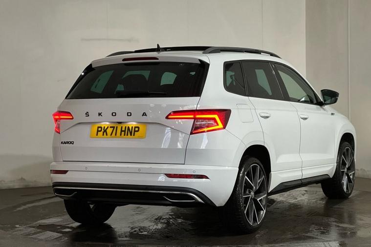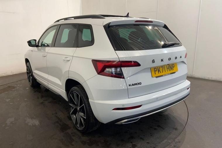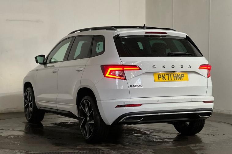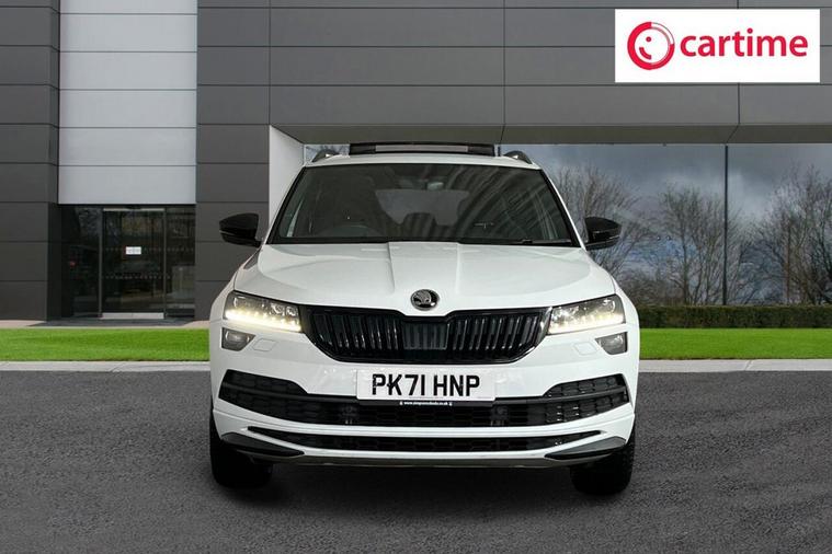This 2021 Skoda Karoq TSI SportLine is a superb example, having had only one owner since new. It boasts a responsive 1.5 litre petrol engine, meeting Euro 6 emissions standards, and is presented in the sporty SportLine trim. Key features include a helpful rear view camera with parking assistance, automatic headlights for convenience, and the KESSY keyless entry and start system for effortless access. Enjoy the modern convenience of wireless phone charging and a fixed panoramic sunroof that floods the cabin with natural light. The Karoq offers a generous boot space, making it incredibly practical for everyday use and longer journeys. Its performance is equally impressive, with a brisk 0 to 60 miles per hour acceleration time of just 8.4 seconds, demonstrating its capability. These highlights, such as the spacious boot and swift acceleration, set this particular Skoda Karoq apart from many other vehicles in its class, offering a superior blend of practicality and driving enjoyment.